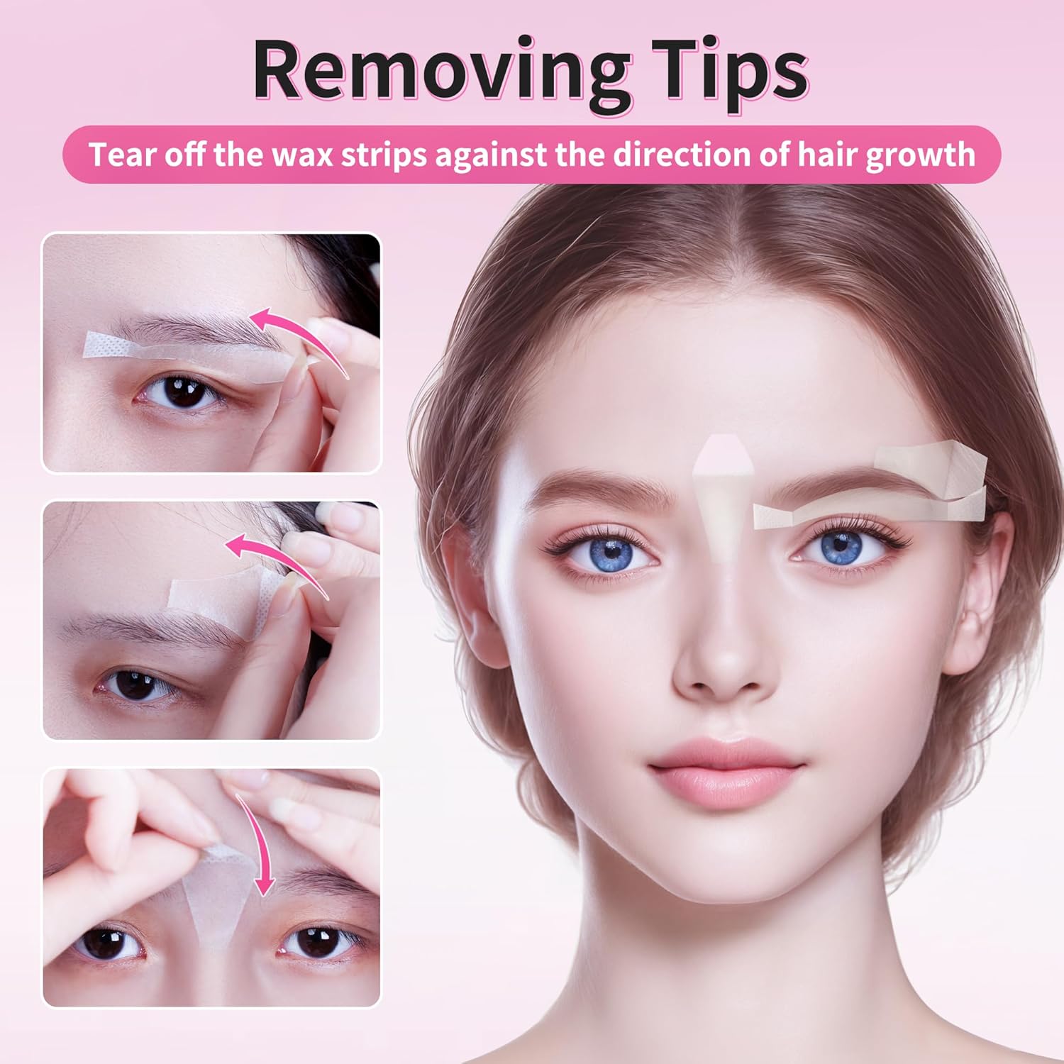 - Easy to Use: Warm up wax strips with hands about 10 seconds, then stick it on the intended area of hair removal, wait 3 seconds, and then rip off the strip in the opposite direction of hair grow. (It is not recommended to depilate multiple times in the same area.) No pain feeling, enjoy a relaxed and pleasant eyebrow wax experience.