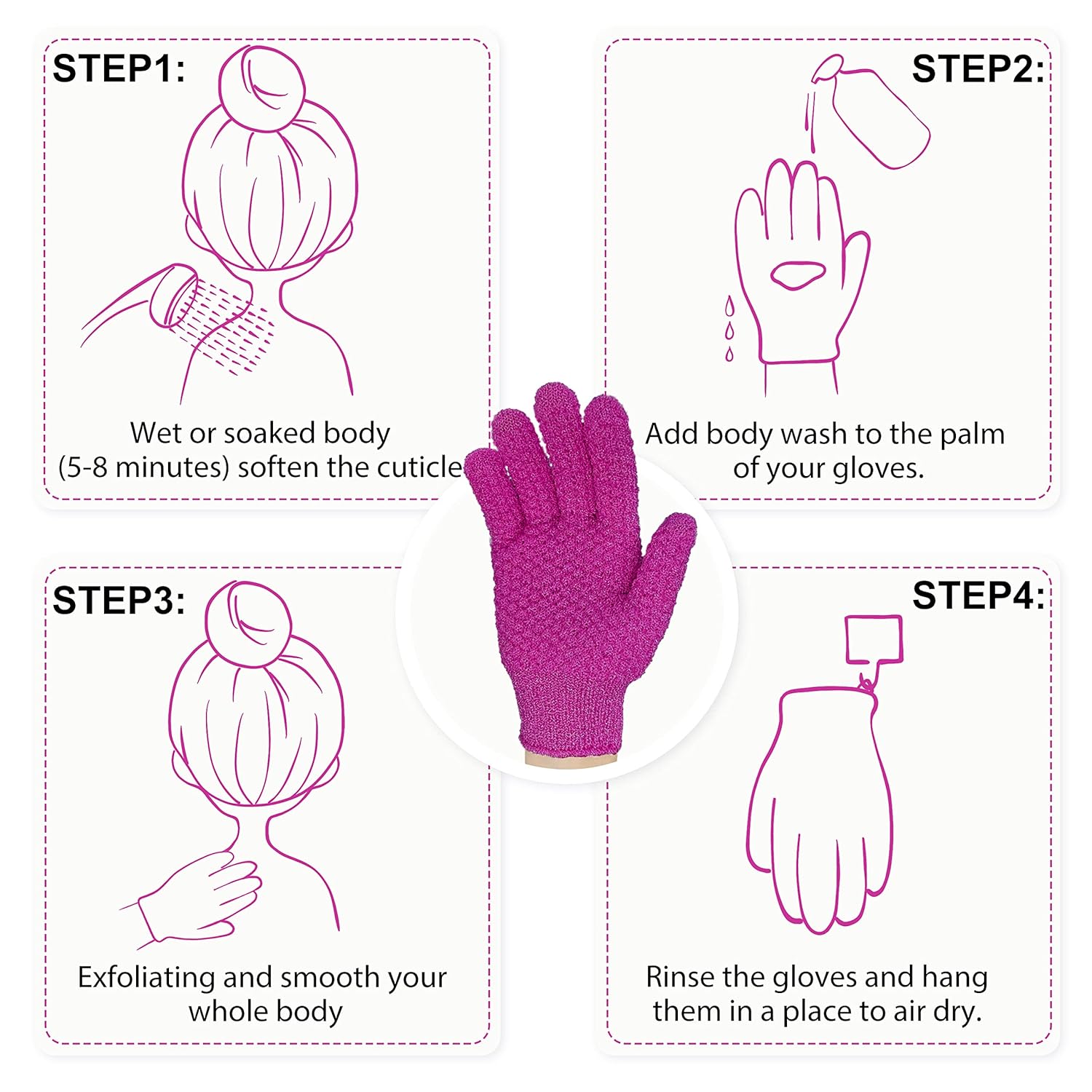 - Skin fresh: use these exfoliating gloves to gently and effectively exfoliate layers of dead skin and impurities from the body’s surface. Lather up with your favorite bath shower gel or soap
