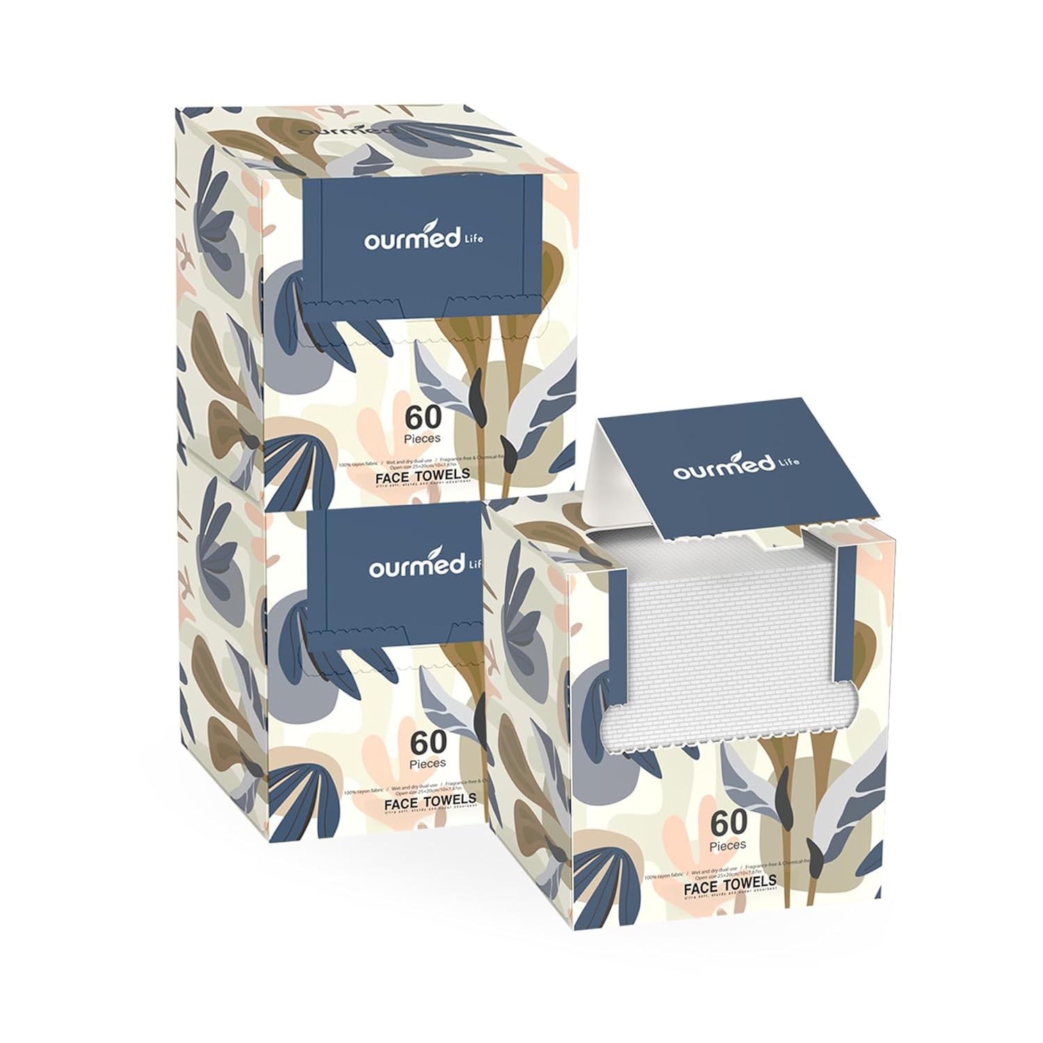 Ourmed Life Face Towels, Disposable Biodegradable Facial Towels for Sensitive Skin, Lint- free Facial Wipes for Washing Face, Skincare and Makeup Remover, Dry Wipes, 10"×7.9" Extra Large, 180 Count