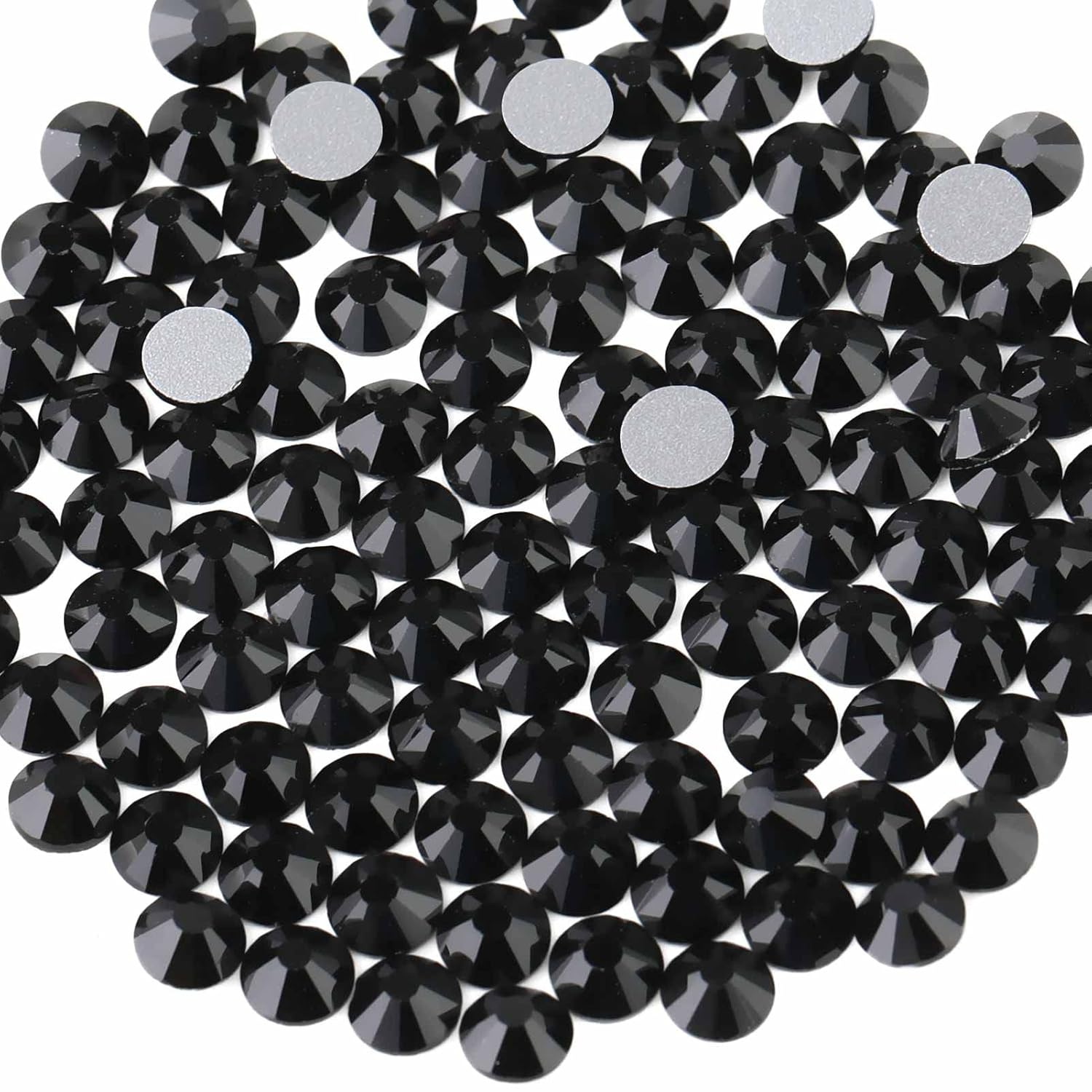 Beadsland 144 Pieces Flat Back Crystal Rhinestones Round Gems for Nail Art and Craft Glue Fix,Black,SS40,8.4-8.7mm