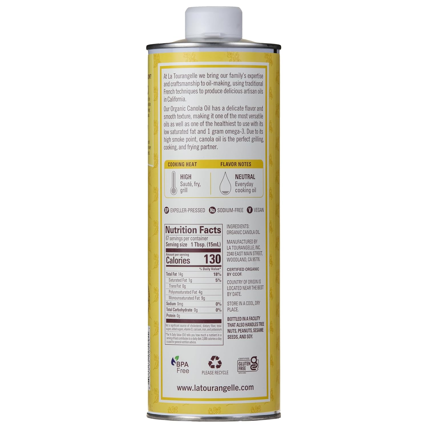 - Traditional and Simple: La Tourangelle Organic Canola Oil is a high quality addition to your everyday cooking. From frying to sautéing, blended salad dressings or sauces, the possibilities are as limitless as your own creativity