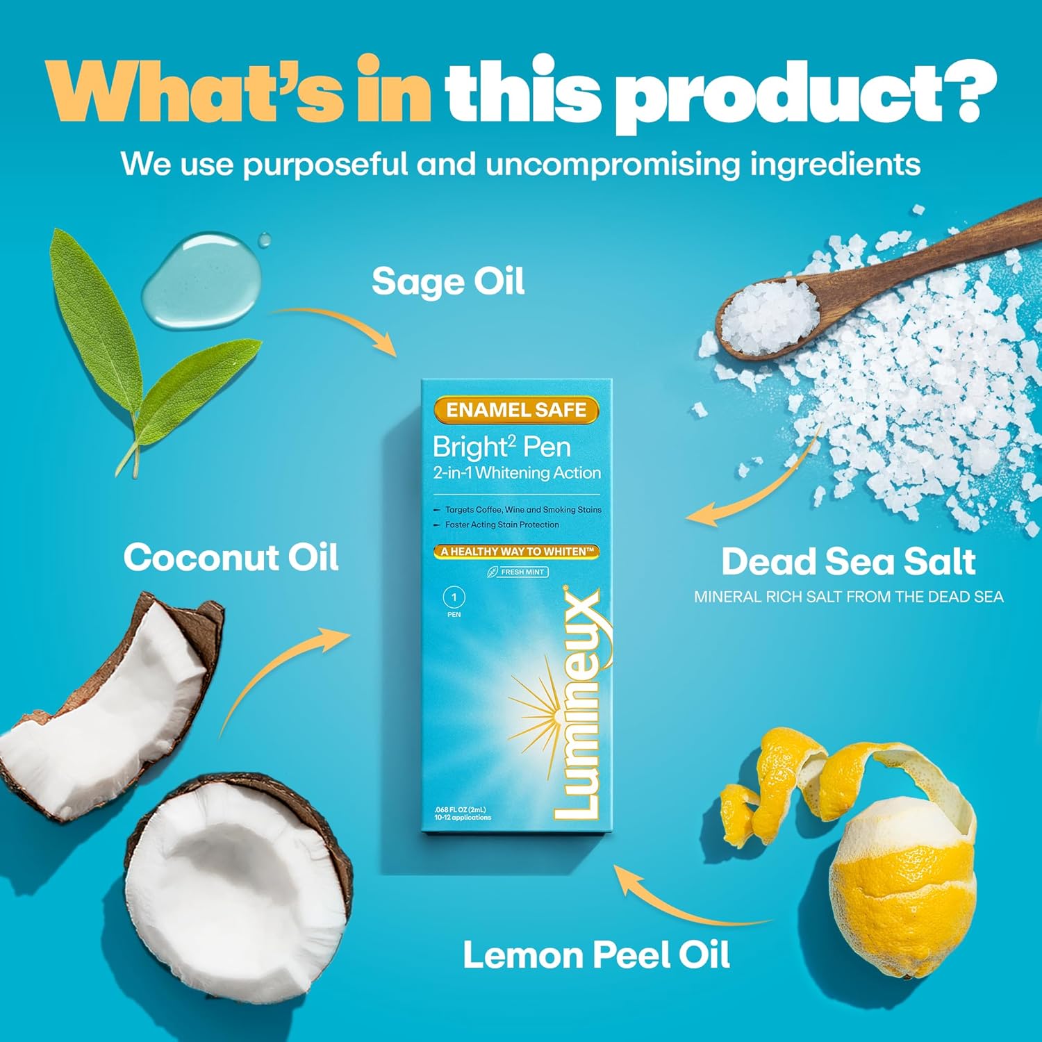 - A healthy way to whiten – Lumineux’s Bright2 Pen helps break up tough stains without the sensitivity, giving you white teeth that look as good as they feel.