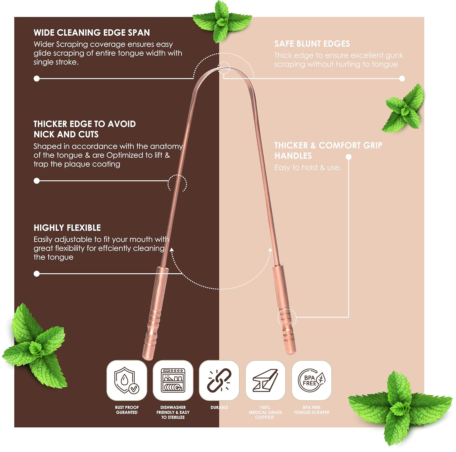 - ✅【REDUCE BAD BREATH】- Tired of bad breath and white substances on your tongue? Clean your tongue in seconds with these high quality, natural copper tongue scraper. With a quik scrape, our tongue cleaner is fast and easy way to clear out the white, coated layer on your tongue for fresh breath and better overall health. TruLife, metal tongue scraper is premium quality made with 100% medical grade copper material will give you the cleanest tongue (and freshest breath) time and time again.