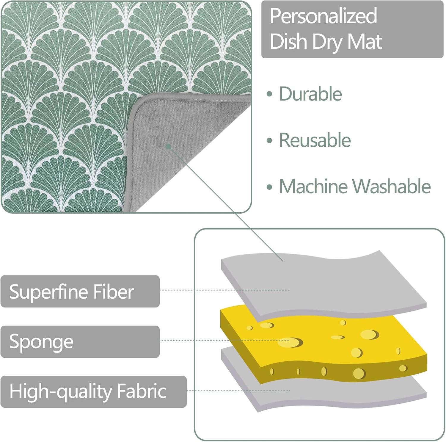 SHIYUE Dish Drying Mat for Kitchen Counter Super Absorbent Spring Kitchen Decor Microfiber Drying Matainers Rack Fast Pad Dish Drainer Mats(Green Shell Geometric,16''x18'')