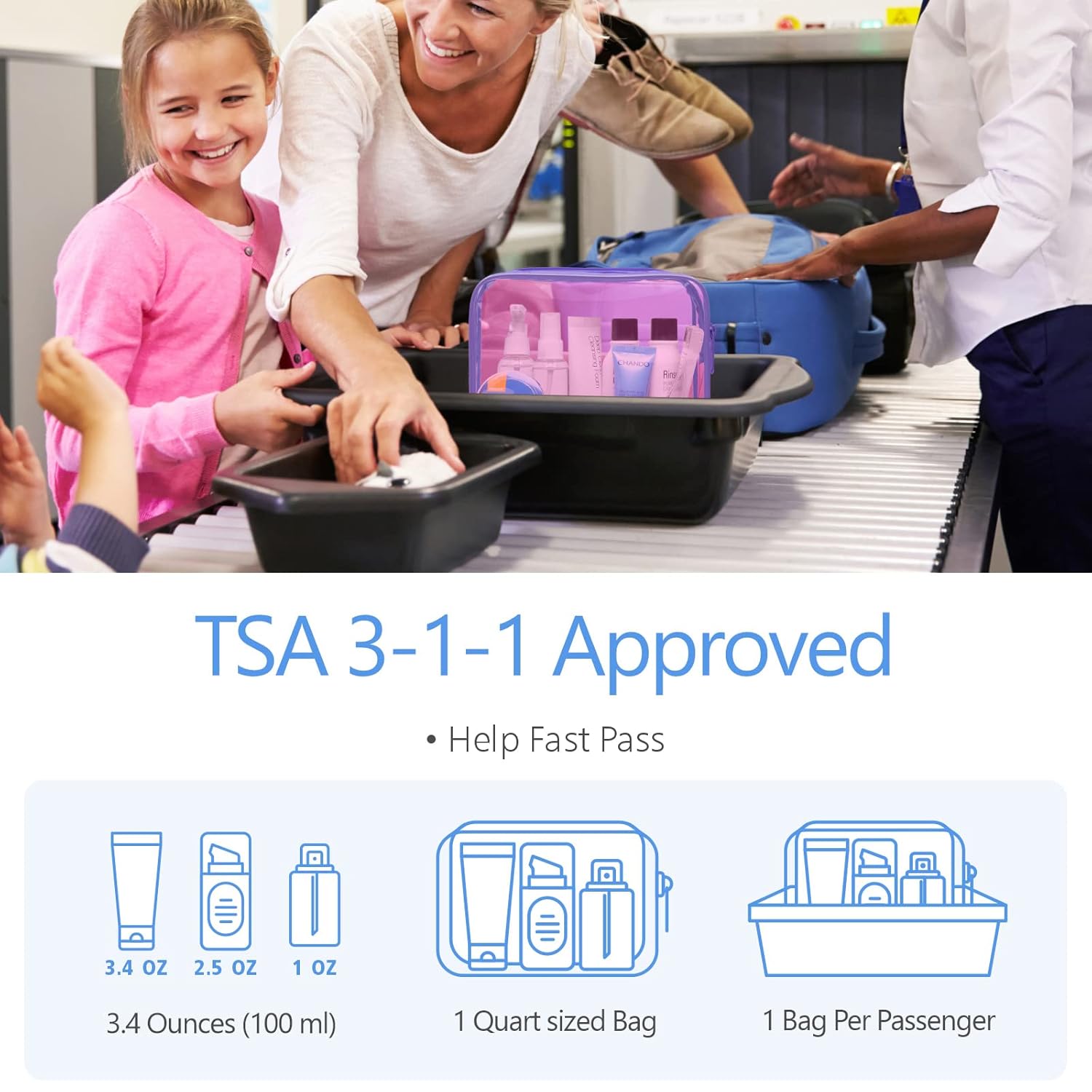 - TSA Approved: The 7.5 x 5.5 x 2.2 inch clear travel toiletry bag strictly follows TSA 3-1-1 liquids rule for carry-on bag of all airlines, so you can easily and quickly pass through security screening with it in the airport
