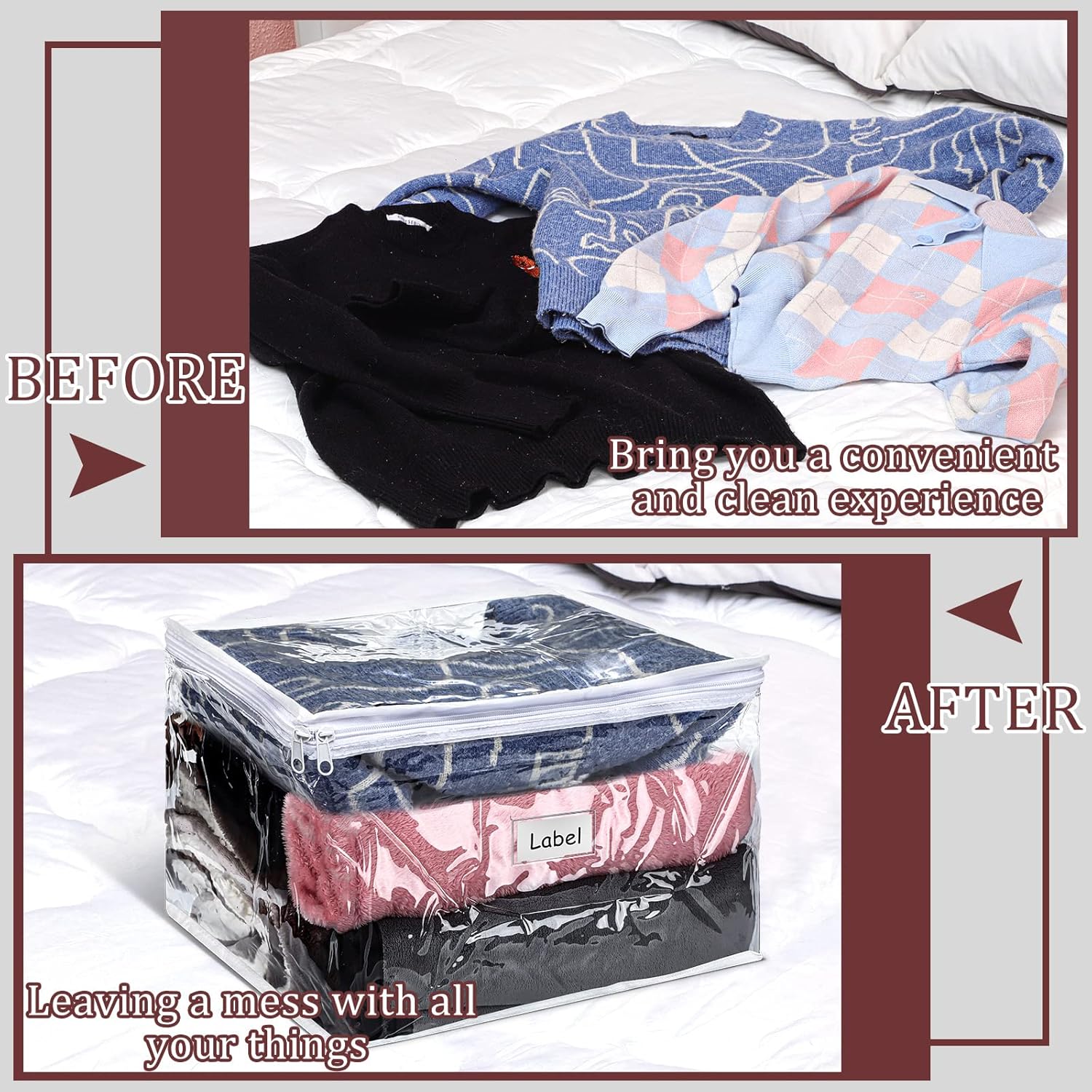 - Versatile Uses: these sweater storage bags can be applied to store your sweaters, fabrics, quilts, sheets, blankets, cosmetics, pillows, or whatever else you want to store in a practical and space saving way