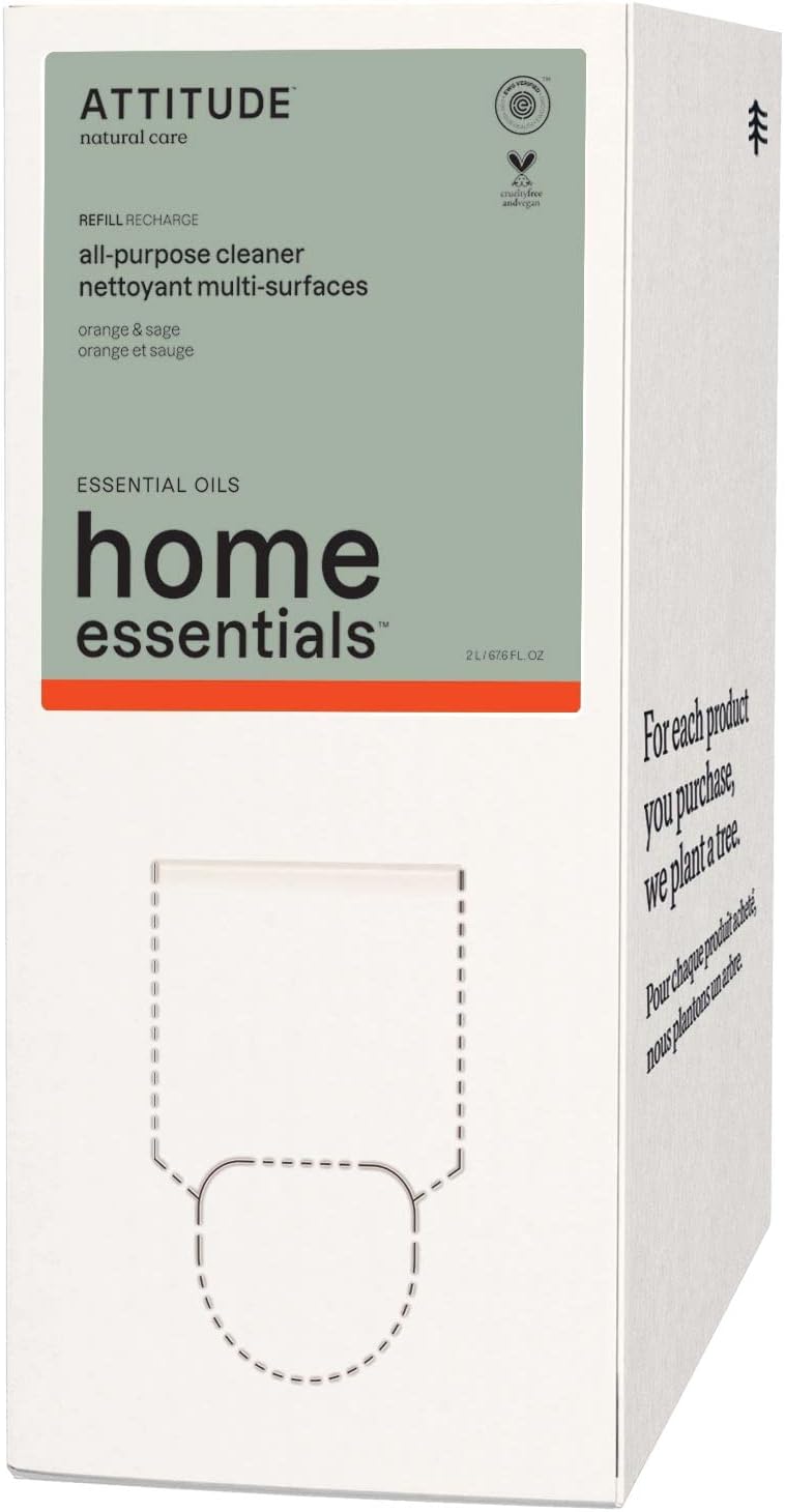 ATTITUDE All Purpose Cleaner, EWG Verified Multi-Surface Products, Vegan, Naturally Derived Multipurpose Cleaning Spray, Orange and Sage, 67.6 Fl Oz