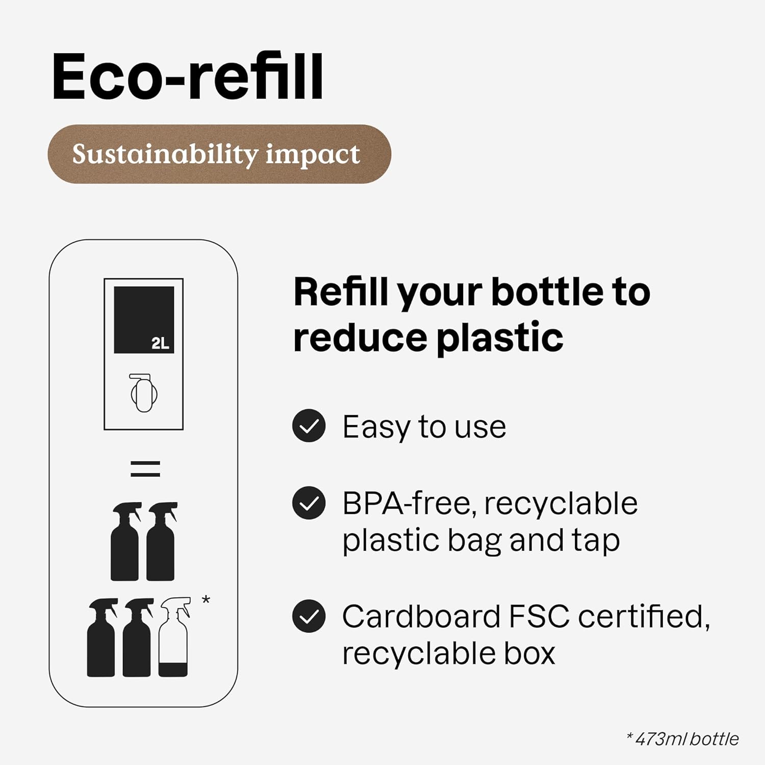 - GOOD FOR THE PLANET: Eco-refills are easy to carry and to use from the comfort of your home; ideal to refill our aluminum bottle infinitely