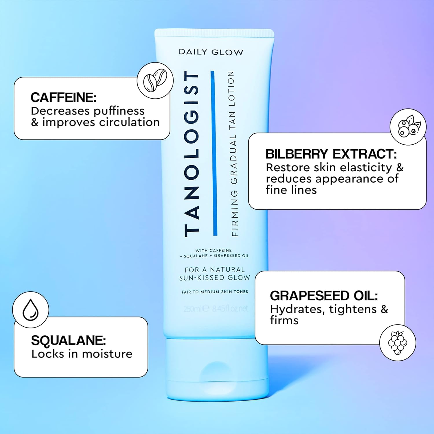 - Tanologist Firming Daily Glow Body Lotion is a gradual tanning lotion that helps build and maintain a natural-looking tan while hydrating and toning the skin for a healthy glow