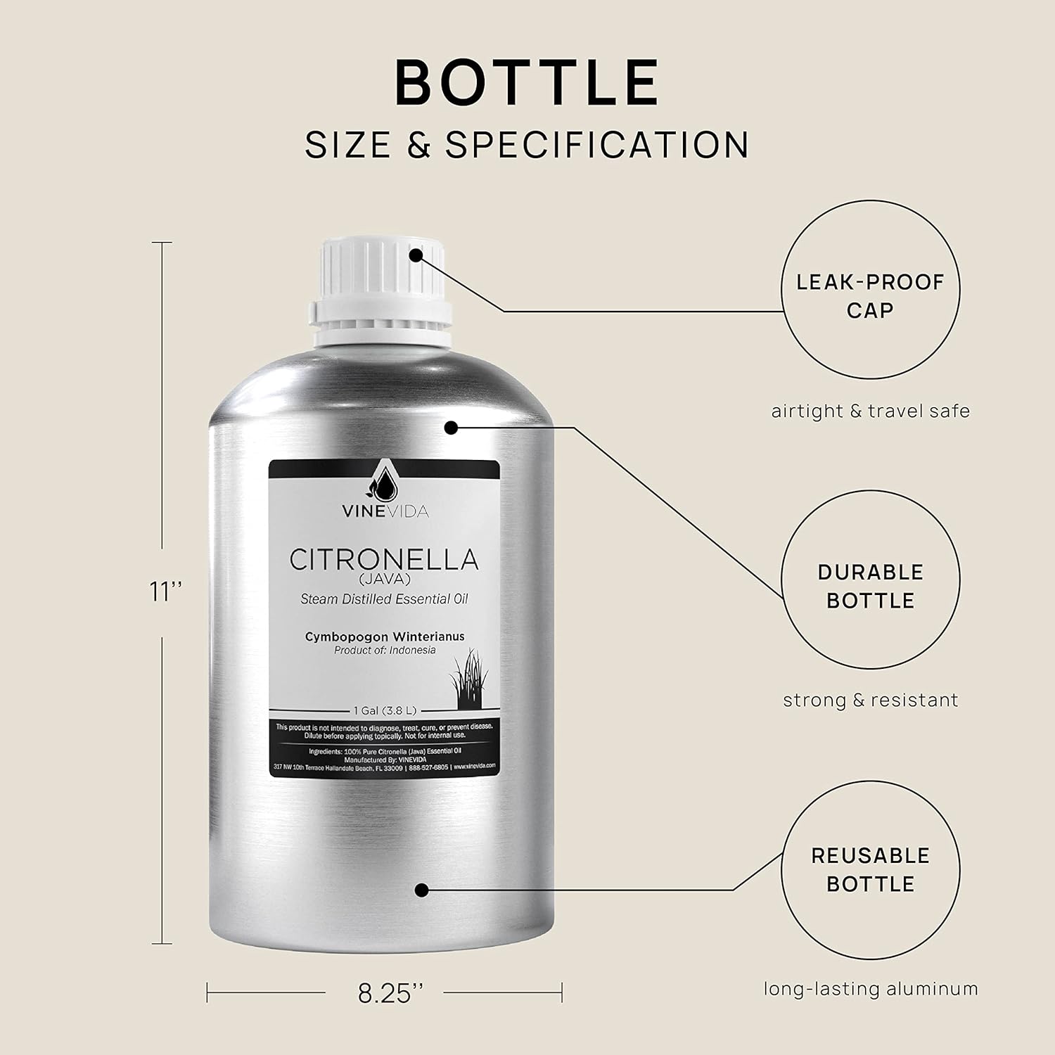 VINEVIDA Citronella Java Essential Oil - Gallon Citronella Oil Undiluted - Bulk Gallon Essential Oil for Soap Making Safe for Skin - DIY Candle Scents for Candlemaking Scents - 8 lbs Citronella Oil