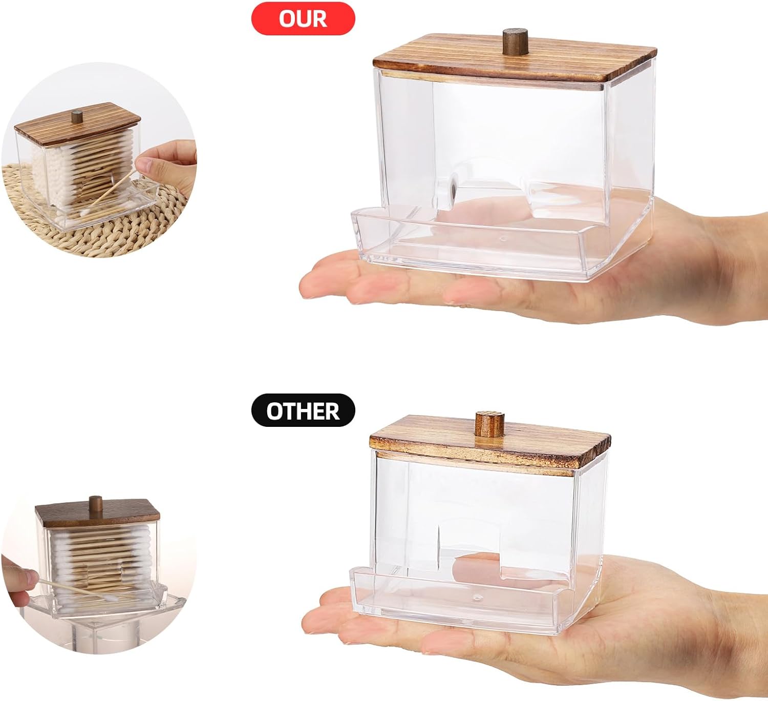 - Bigger than Others-Compare with others with same shape our organizer are bigger. Putting&Picking cotton swabs more easier