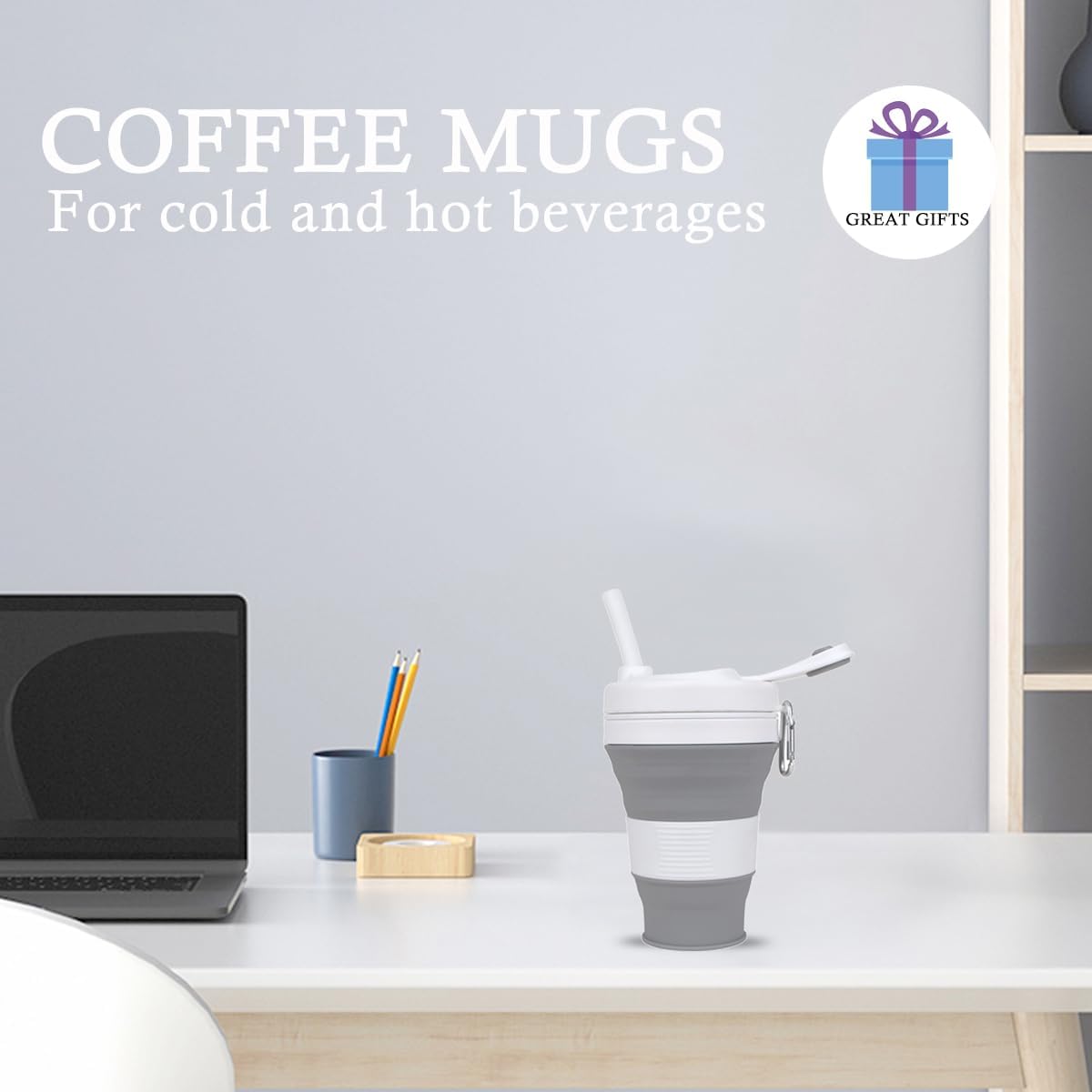 Silicone Coffee Cup with Straw lid Collapsible Cups for Traveling 20oz Lightweight Folding Water Mug for Picnic Hicking Camping Climbing