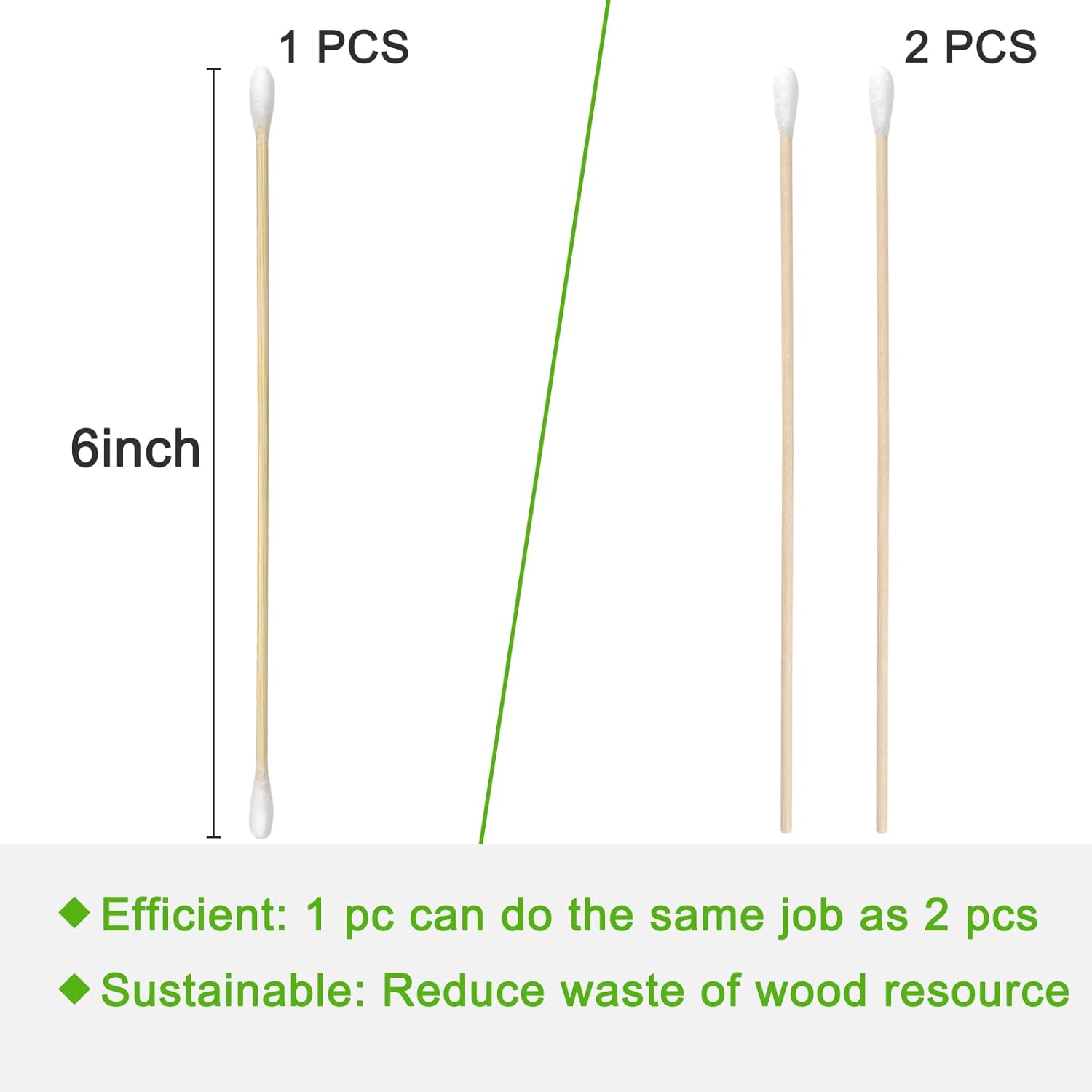 - Double End Design: 200 pcs double tip long cotton swabs have 400 cotton tips, fewer long cotton swabs can get the same job done, reduce material waste, more sustainable