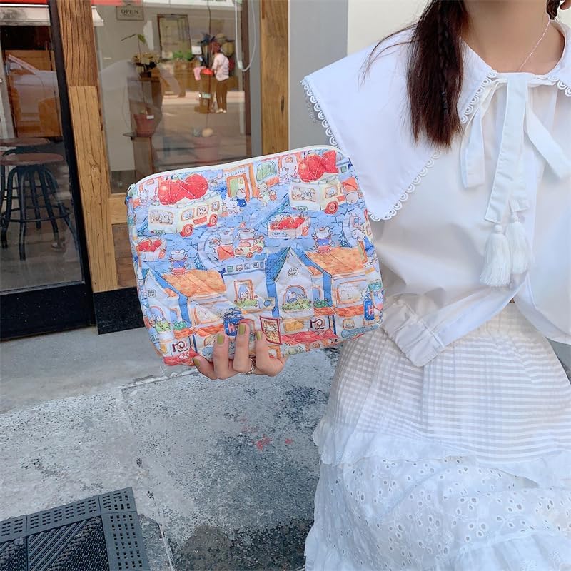 - Elegantly Quilted Exterior: Discover the beauty of our quilted cotton makeup bag, featuring a sophisticated exterior that adds a touch of luxury to your cosmetic organization.SIZE: 9.8'x7.8โx2.3'(25cmx18cmx6cm)