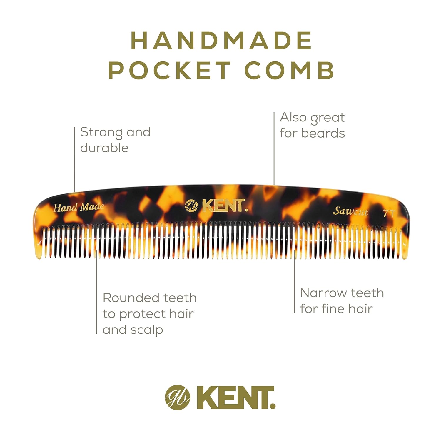 - GENTLE GLIDING COMB: The hand sawn combs are the nature of Kentโs Success. Cellulose acetate is a tactile, yet flexible and strong matrial. They glide effortlessly through hair without scratching or damaging the hair or scalp. Kent Combs have rounded teeth which ensure smooth and comfortable action.