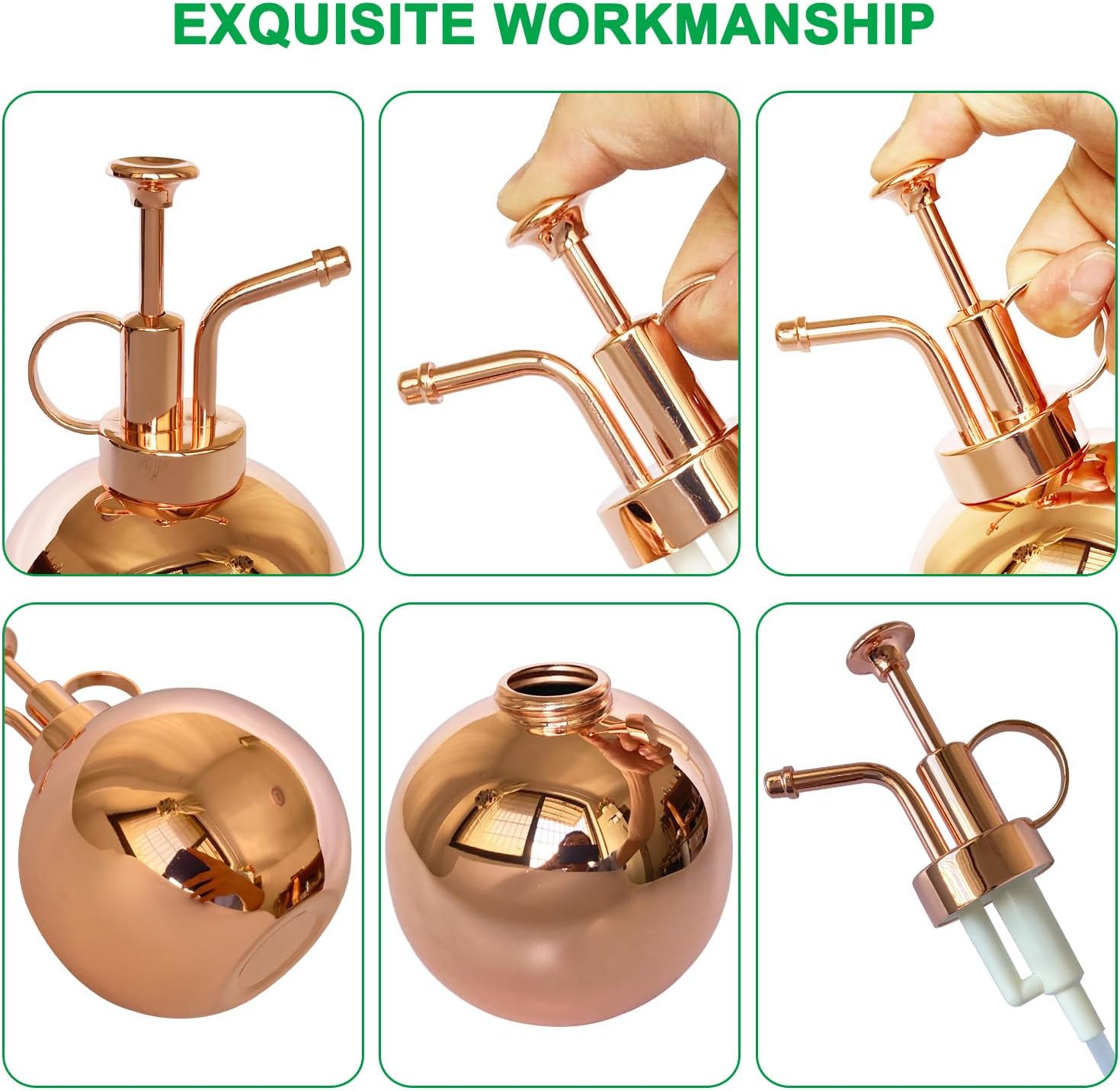 - [High quality material] The pot of metal plant sprayer is made of high quality stainless steel, the nozzle is made of metal zinc alloy, the spray pump is made of white plastic, the appearance is colored by electroplating, the product is leak-proof, rust-proof, scratch-proof, corrosion-proof and long-lasting without fading.