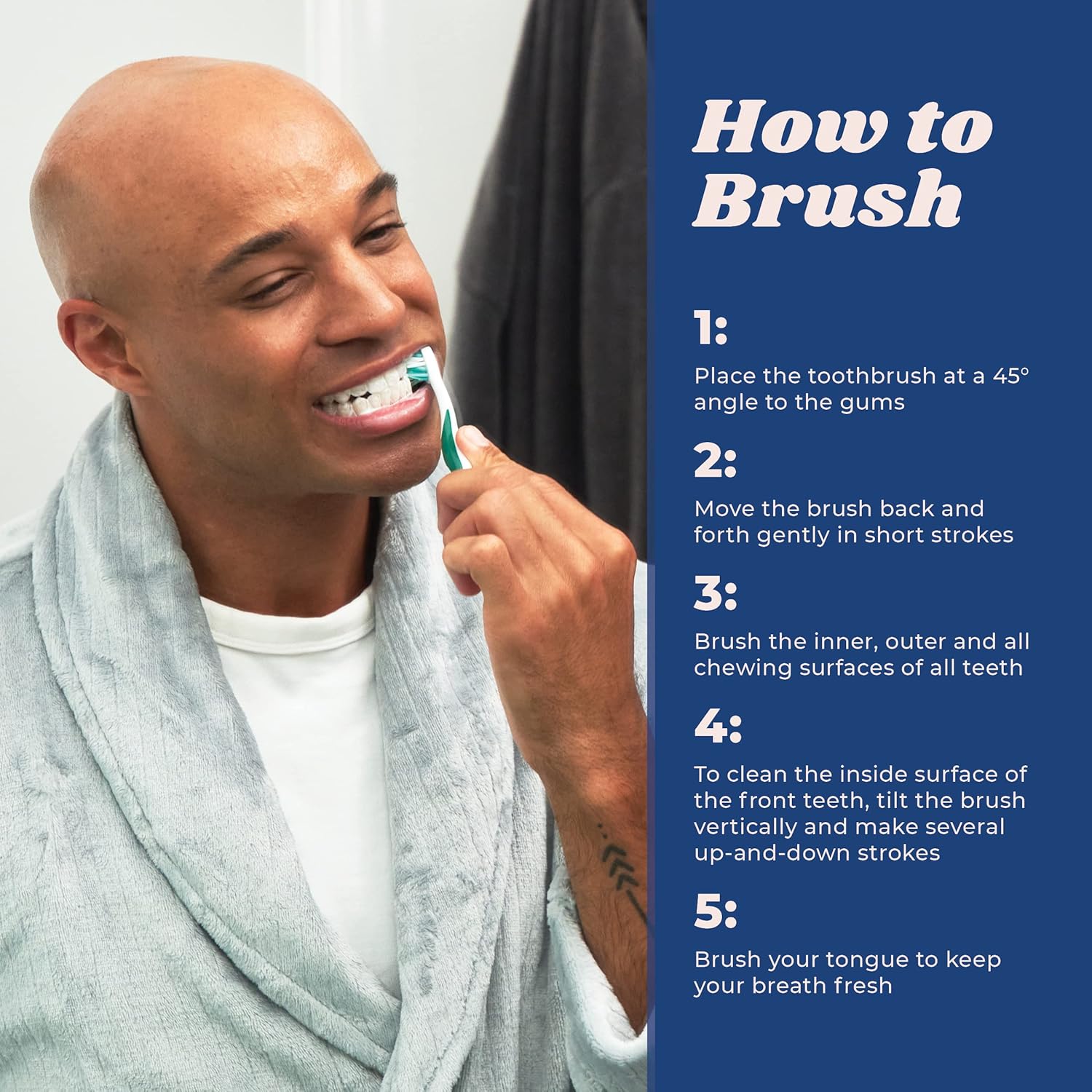 - How to Brush Teeth Like a Dentist - Rinse your toothbrush and apply a small amount of toothpaste to it. Brush every side of every tooth in a circular motion for about 2 minutes to clean. Be sure to gently brush your gums and tongue as well. Rinse thoroughly. Don't forget to floss, and follow up with Cleure mouthwash!