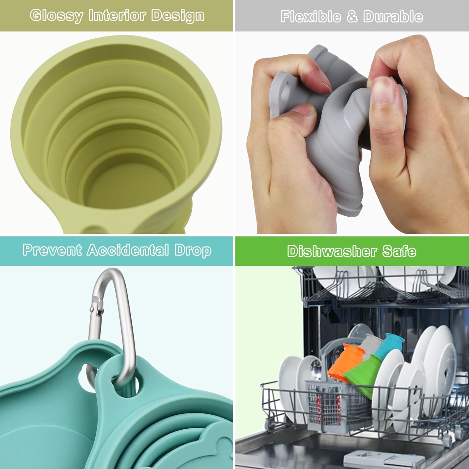 - 💧Durable & Sustainable: Folding cups are made of food-grade silicone, BPA-free, non-toxic, odorless, durable & reusable. Heatproof from -40F to 446F, silicon cups are built to safely accommodate warm coffee as well as ice-cold beverages.