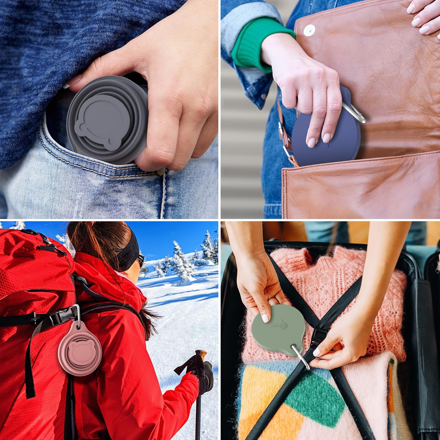 - 💧Camping Items: The mini portable cups have spiral appearances to prevent the cup from slipping out of your hand, which is good gifts to your kids, family and pets. Package includes 4 collapsible cups, and provide extra another gift—4 portable hooks.