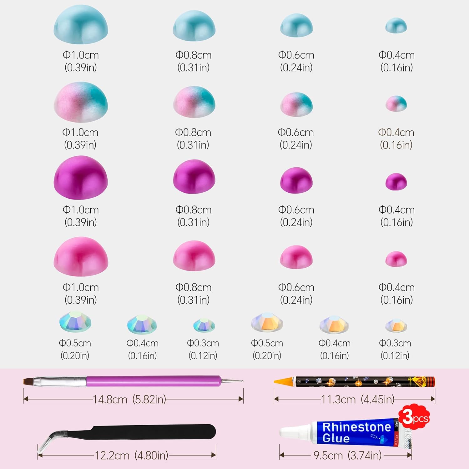 60g Mermaid Pearls Rhinestones for Crafts Mixed Size 3mm-10mm AB Color Round Half Pearls Flatback Pearl Beads and Resin Rhinestones Set for Face Art with Gel