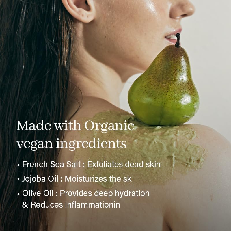 - [Gentle Exfoliation from Head to Toe] Experience instantly smoother skin and a refreshed scalp. Infused with French sea salt and organic vegan ingredients, this scrub enhances skin texture while maintaining the skin’s natural moisture barrier.