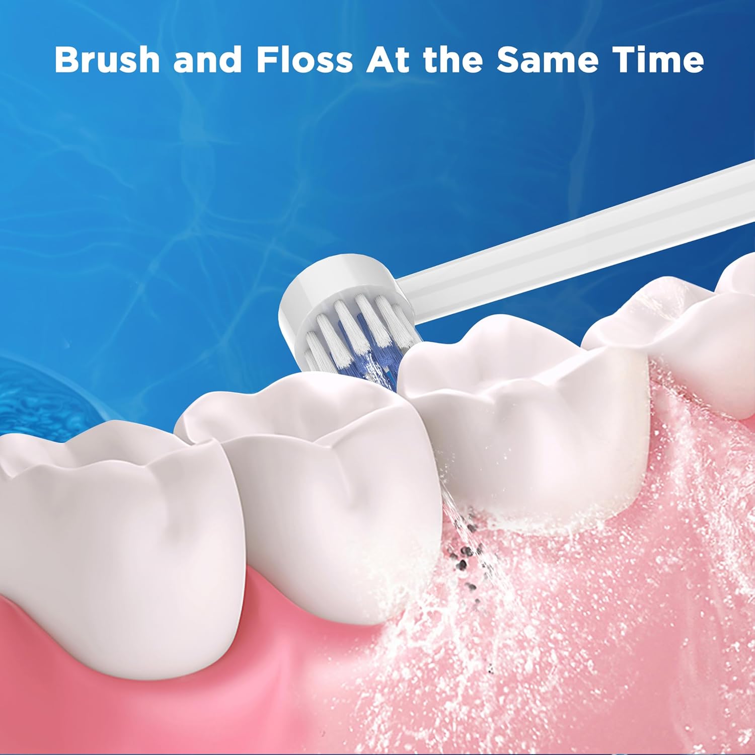 - Brush and Water Floss at the Same Time: Soft end-rounded bristles effective clean deep between teeth and below the gumline. The water through the brush to clean and rinse the tooth surface.