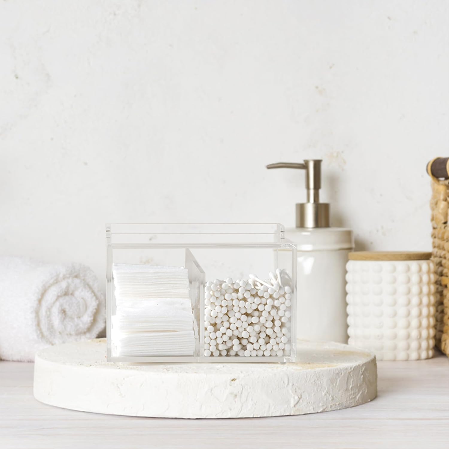 • Premium Acrylic Material: Cotton swab holder is made of premium acrylic with high purity and clarity, which is stable, long-lasting and environmentally friendly. PLEASE DO NOT USE ANY ALCOHOLIC CLEANER TO WASH, to prevent damage to products. Use soft cloth to wipe instead