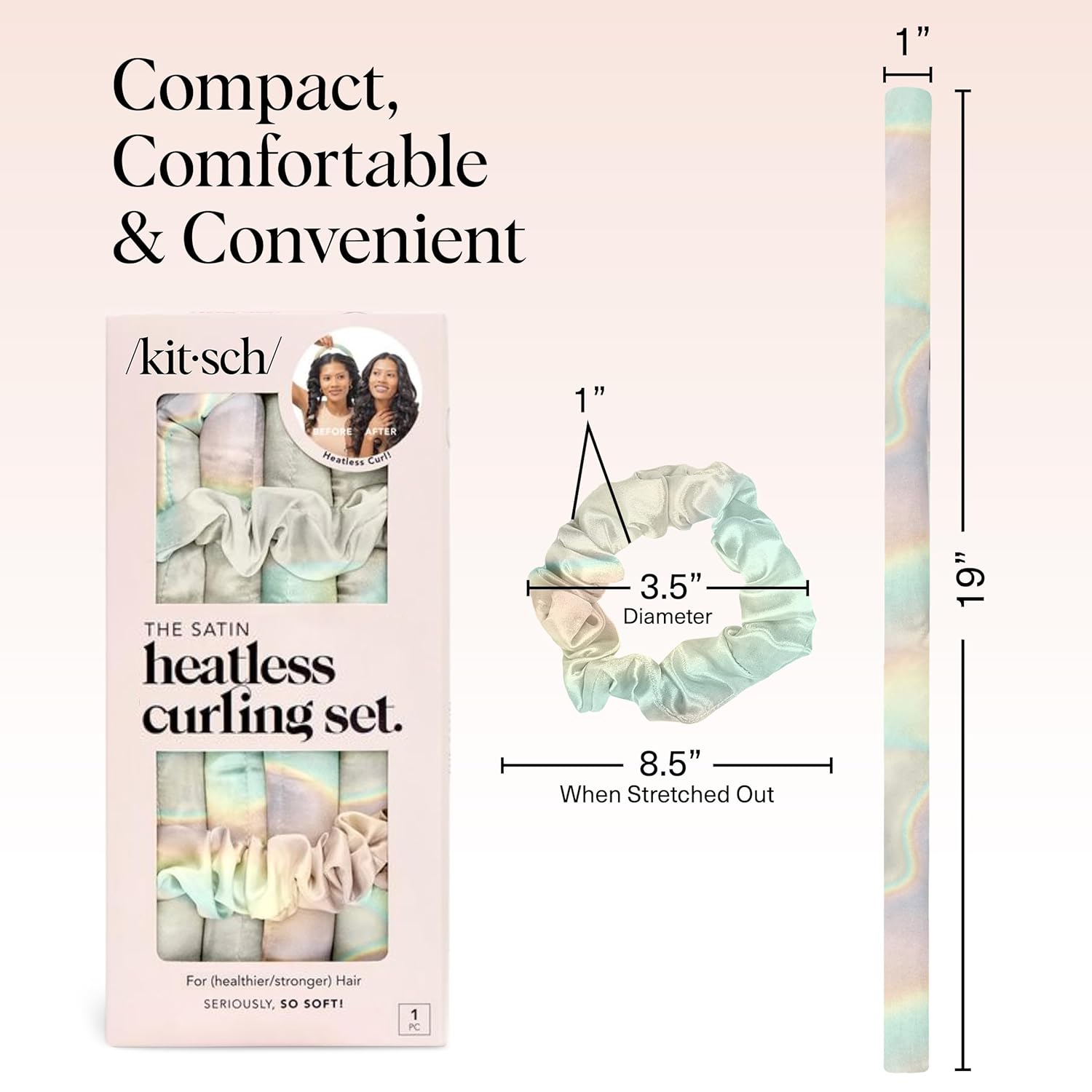 - BYE-BYE HAIR DAMAGE: Protect your hair from heat damage with the Kitsch Overnight Hair Curler. This set includes a curling rod and two satin scrunchies, all wrapped in premium satin fabric to keep your hair smooth and frizz-free while creating gorgeous, heat-free curls.
