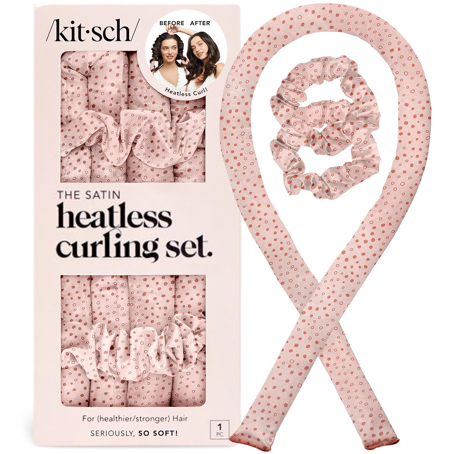 Kitsch Satin Heatless Curling Set – Heatless Hair Curler for Women, Hair Curler to Sleep In - with 2 Satin Scrunchies for Overnight Curls – No Heat Damage Styling with Heatless Curler - Micro Dot