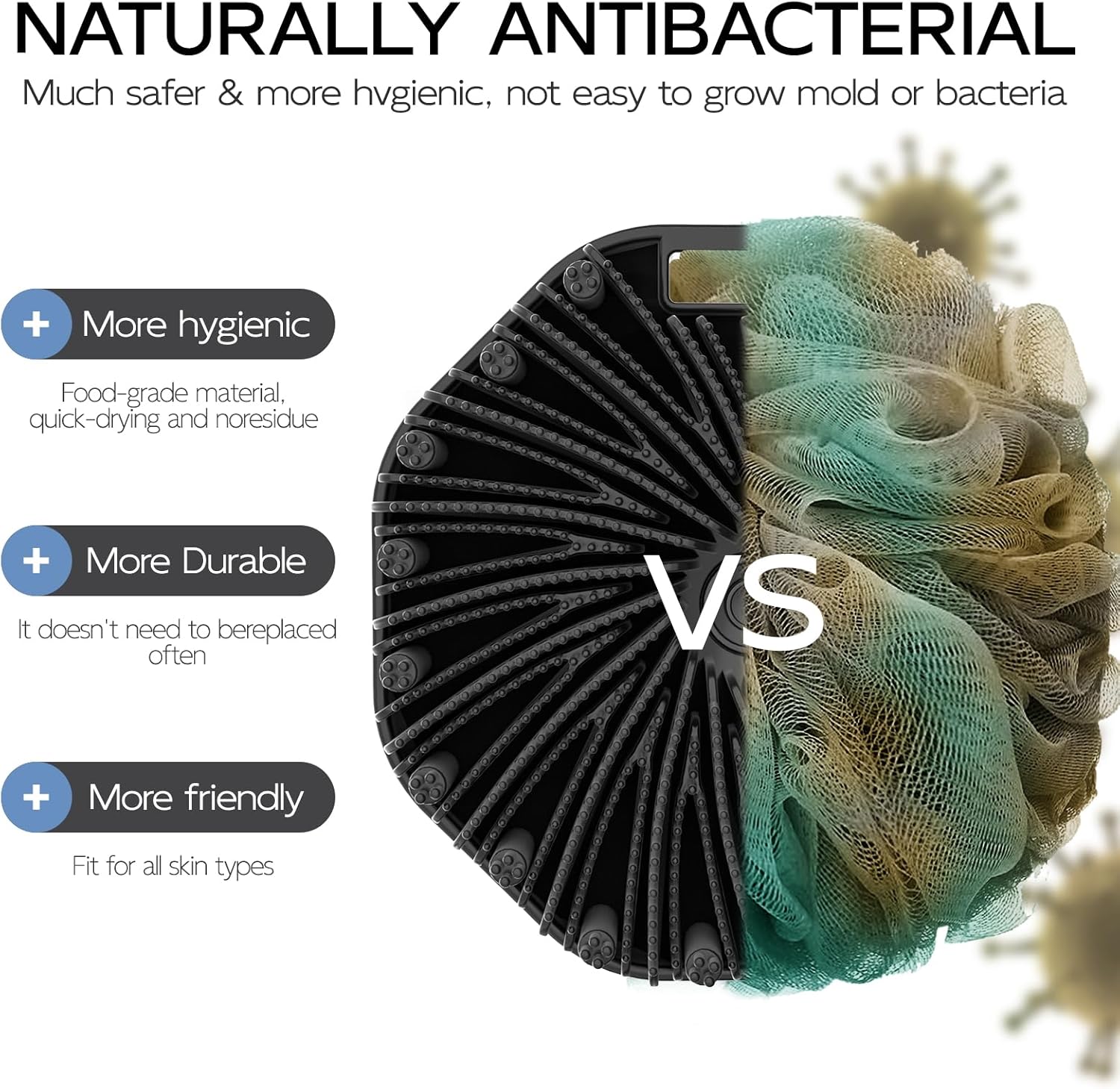 - ECO-FRIENDLY SILICONE: Crafted from safe and durable food-grade silicone, our body bath scrubber is gentle on your skin while still offering effective exfoliation and cleansing.