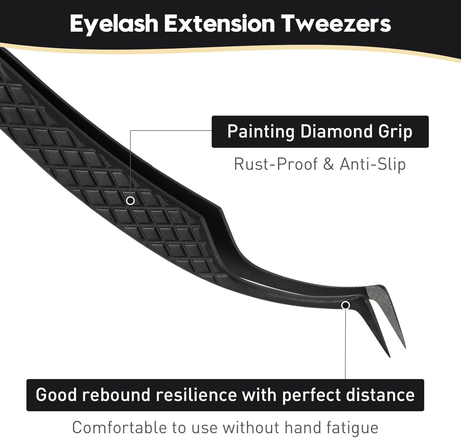 Ms.Queen Tweezers for Eyelash Extensions, Fiber Grip S-Curved Lash Tweezers for Inner Corner,Volume & Classic Lashes,Black