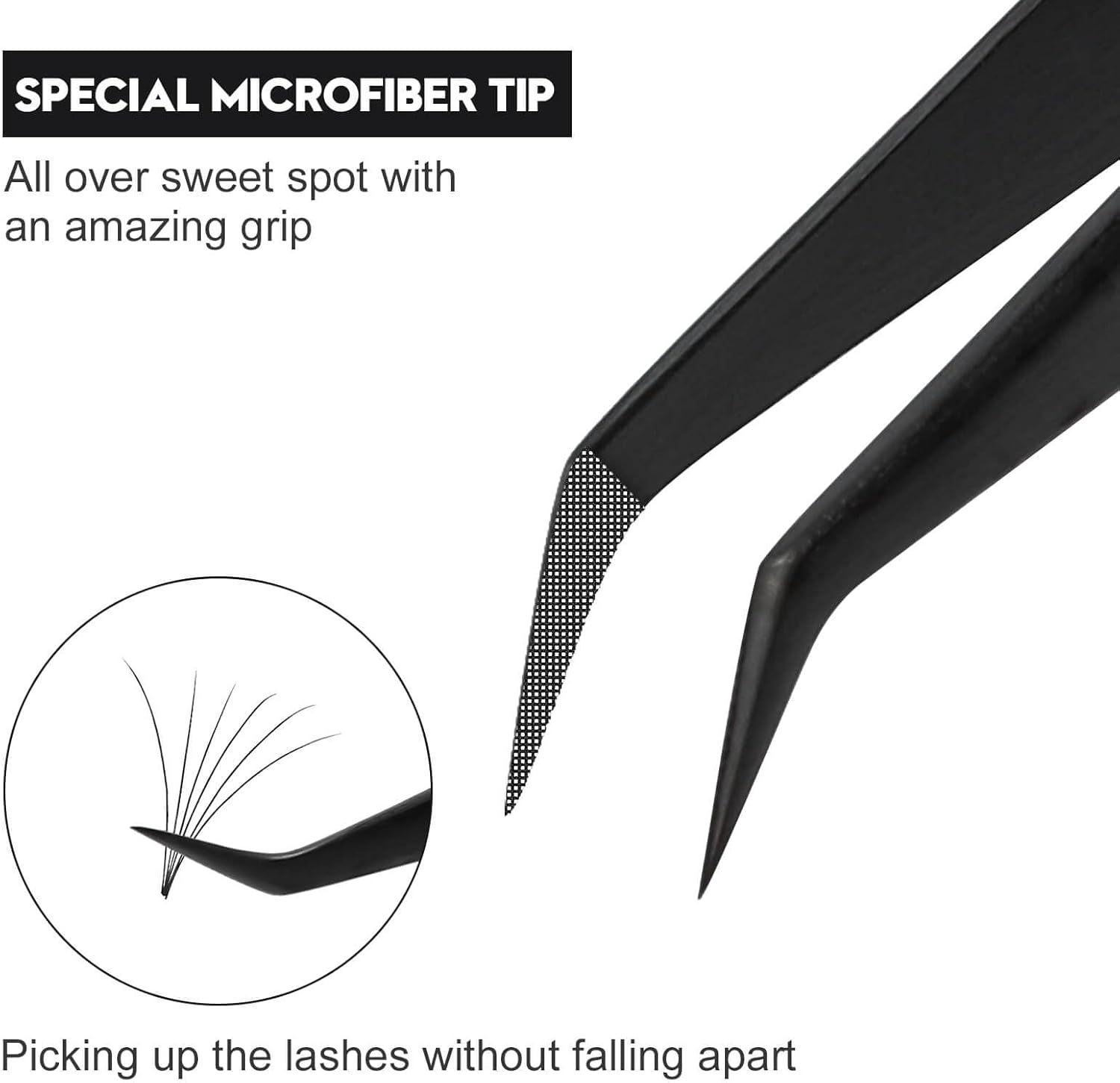 - ★FIBER TIP LASH TWEEZERS:Specifically designed with a microfiber tip Special microfiber tip—All over sweet spot with an amazing grip, picking up the lashes without falling apart.For professional lash artists use & beginner Friendly.
