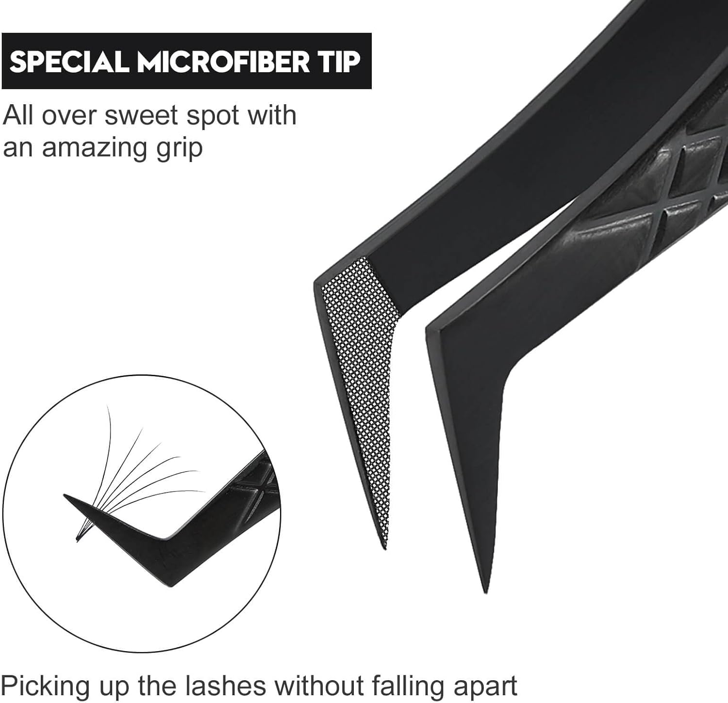 - ★FIBER TIP LASH TWEEZERS:Specifically designed with a microfiber tip Special microfiber tip—All over sweet spot with an amazing grip, picking up the lashes without falling apart.For professional lash artists use & beginner Friendly.
