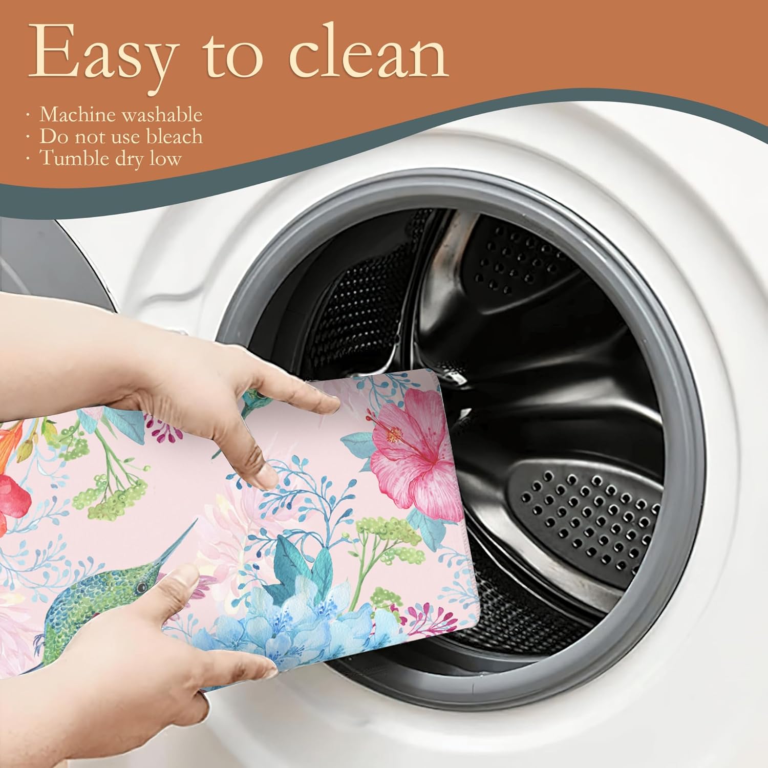 Humming Bird Dish Drying Mats 18x24 Inch,Tropical Flowers Dish Pad Drying Rack Mat for Kitchen Counter Ultra Absorbent Microfiber Dishware Coffee Maker Bar Countertop Decor