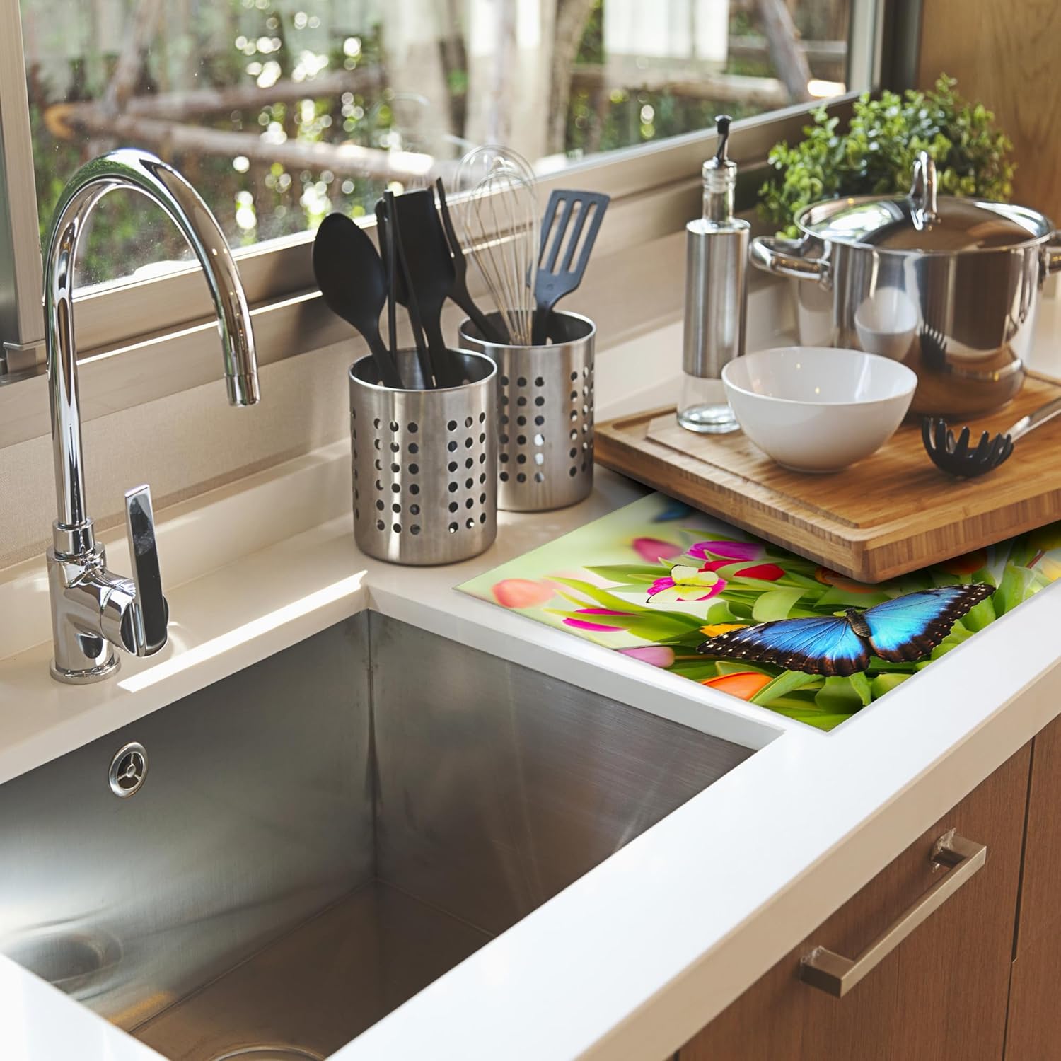 Tulips Flowers Dish Drying Mat for Kitchen Counter Decor,Beautiful Butterfly Dish Drying Rack Pad Absorbent Reversible Microfiber for Coffee Tableware Sink Countertop 18x24 Inch