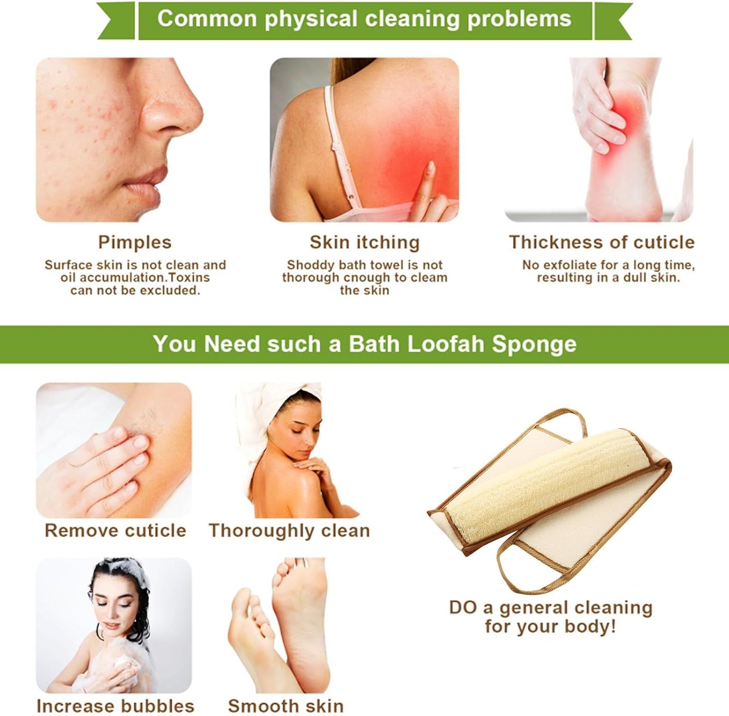 - [HEALTHY CLEANSING] Thisloofah Exfoliating Body Scrubber Is a Must-Have For Your Skincare Routine. Before Bathing, Please Luffa Sponge Immerse It In Warm Water To Soften It To Achieve The Effect Of Use. He Unique Texture Of The Shower Loofah Helps To Remove Dead Skin Cells, Unclog Pores, And Promote Healthy Blood Circulation, Resulting In Smoother And Healthier Skin.