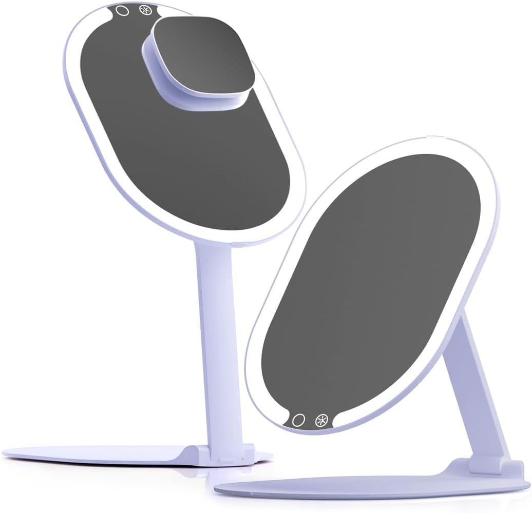 - Adjustable Height – Our travel mirror effortlessly transitions from handheld to vanity, allowing you to find the perfect viewing angle at various heights. No more uncomfortable hunching!