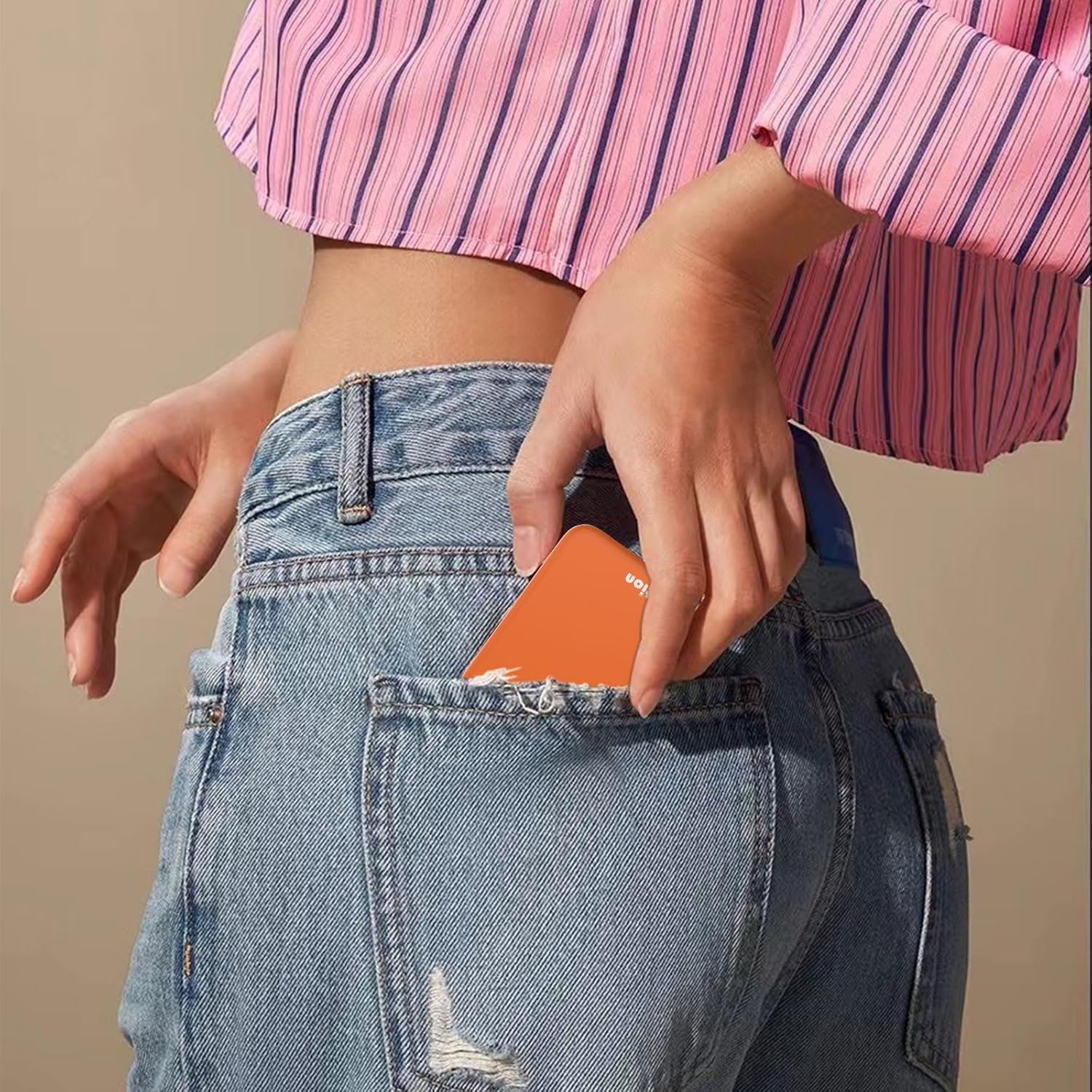 Kintion Rechargeable Pocket Mirror, Double Sided 1X/3X Magnification Compact Vanity Mirror, 3 Color Lights, Dimmable, Small Portable Wallet Mirror, Lighted Travel Mirror for Women Gifts, Orange
