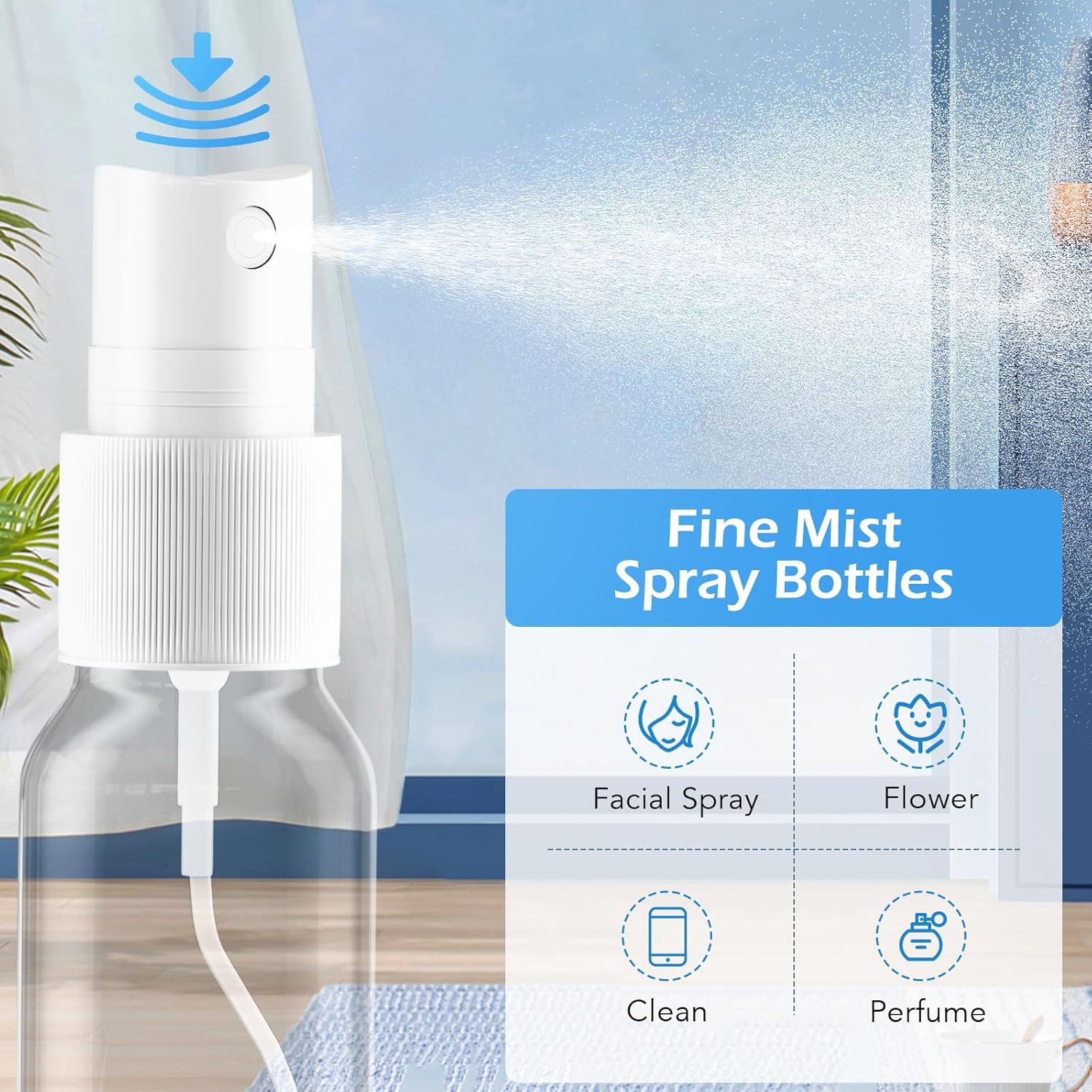Spray Bottles, 4oz/120ml Clear Empty Fine Mist Plastic Mini Travel Bottle Set, Small Refillable Liquid Containers with 2pcs Funnels and 24pcs Labels (6 Pack)