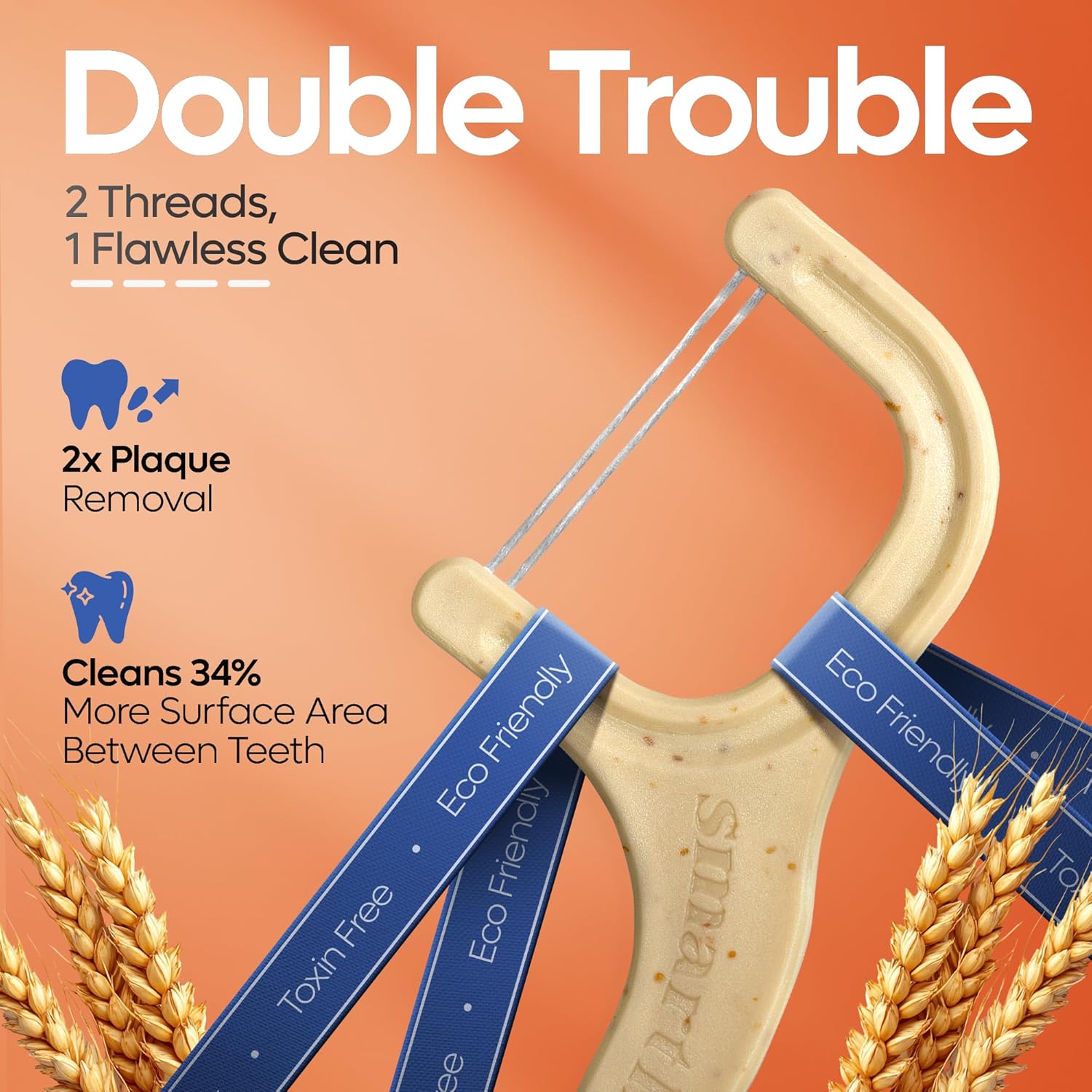 - ♻️ ORIGINAL STRAW WHEAT BLEND: We're The First To Introduce Flossers Made from a Mixture of Straw Wheat (Gluten-Free!) and PLA, a Plant-Based Plastic Made from Renewable Resources. Even the Packaging Is Made from Recyclable Materials, Giving You the Best Floss Stick Alternative for Your Teeth.
