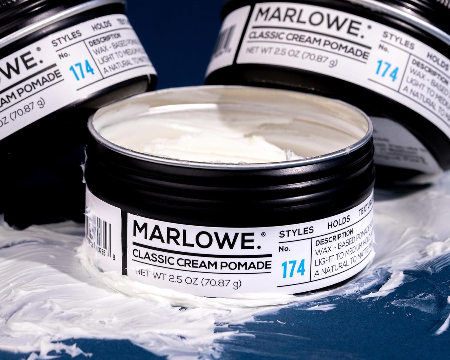 MARLOWE. No. 174 Classic Cream Pomade for Men 2.5 oz, Wax-Based Light to Medium Hold, Natural to Matte Finish, Conditioning Coconut Oil & Shea Butter, Original Pine & Agarwood Scent