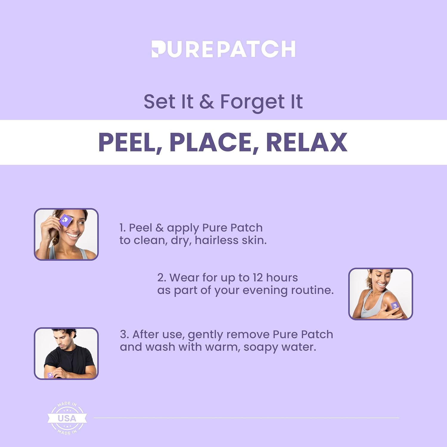 Pure Patch Sleep Patch – Plant-Based Vegan Topical Patch – Magnesium Glycinate – GABA – L-Theanine – Apigenin – Non-Ingestible – Water-Resistant – Gentle on Skin – Gluten Free – Made in USA –6 Patches