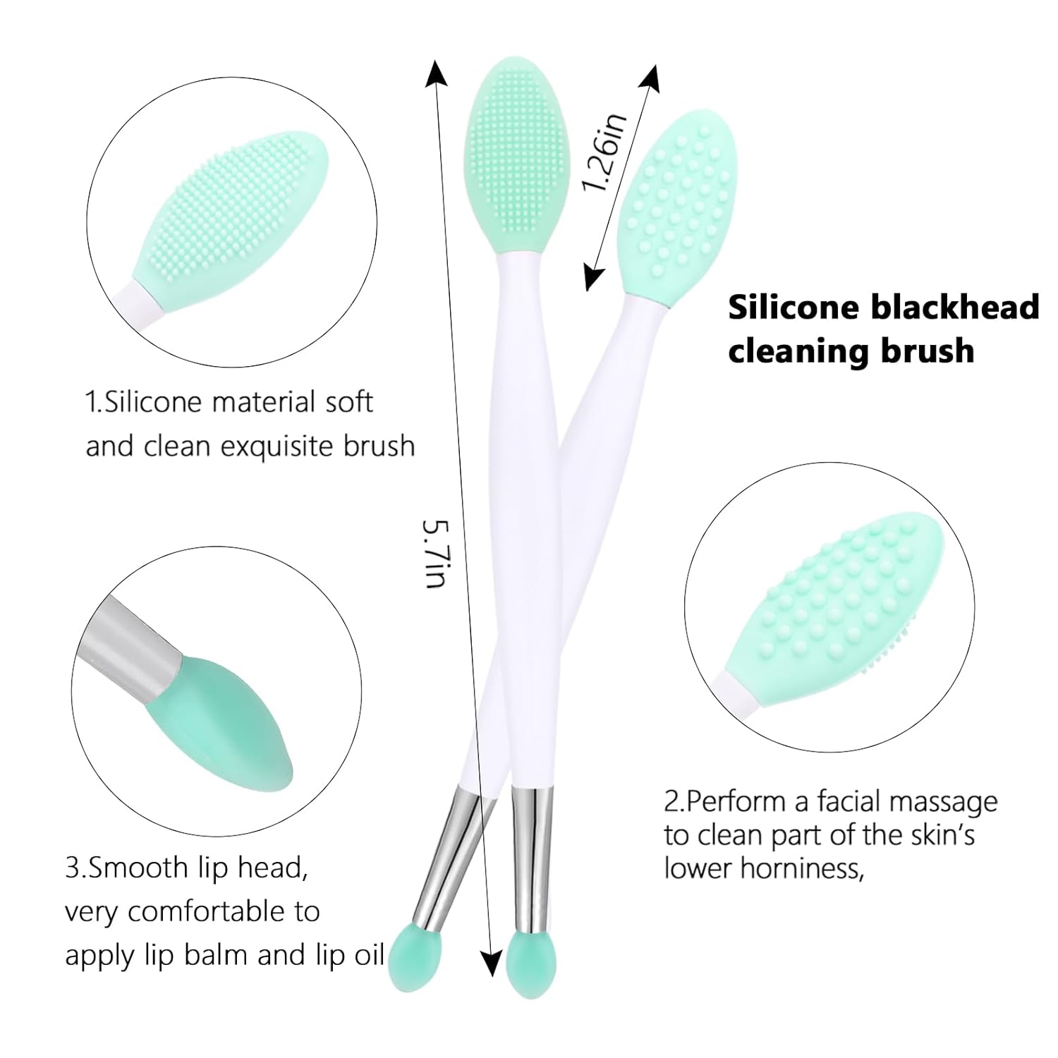 - Lip Exfoliating Brush: this silicone brush is great to exfoliate lip or nose. Apply lip scrubs by silicone exfoliating lips brush, give your lips a smoother and fullness appearance. Mixture color exfoliating brush for nose with two different structure of bristles to ensure cleans and massages the skin while deep cleansing pores.