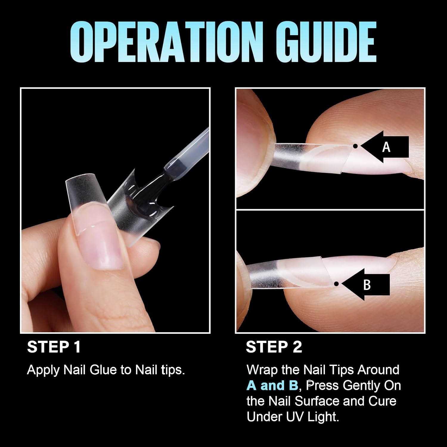 - 【Long Lasting 21 days+】According to the correct use method, it only takes a few minutes to extend your nails, and at the same time maintain the nail extension effect long lasting for 21+ days. No smell, no harm to nails. No crease acrylic half cover nail tips. Save time and money on trips to the nail salon, enjoy nail diy fun with your friends and family.