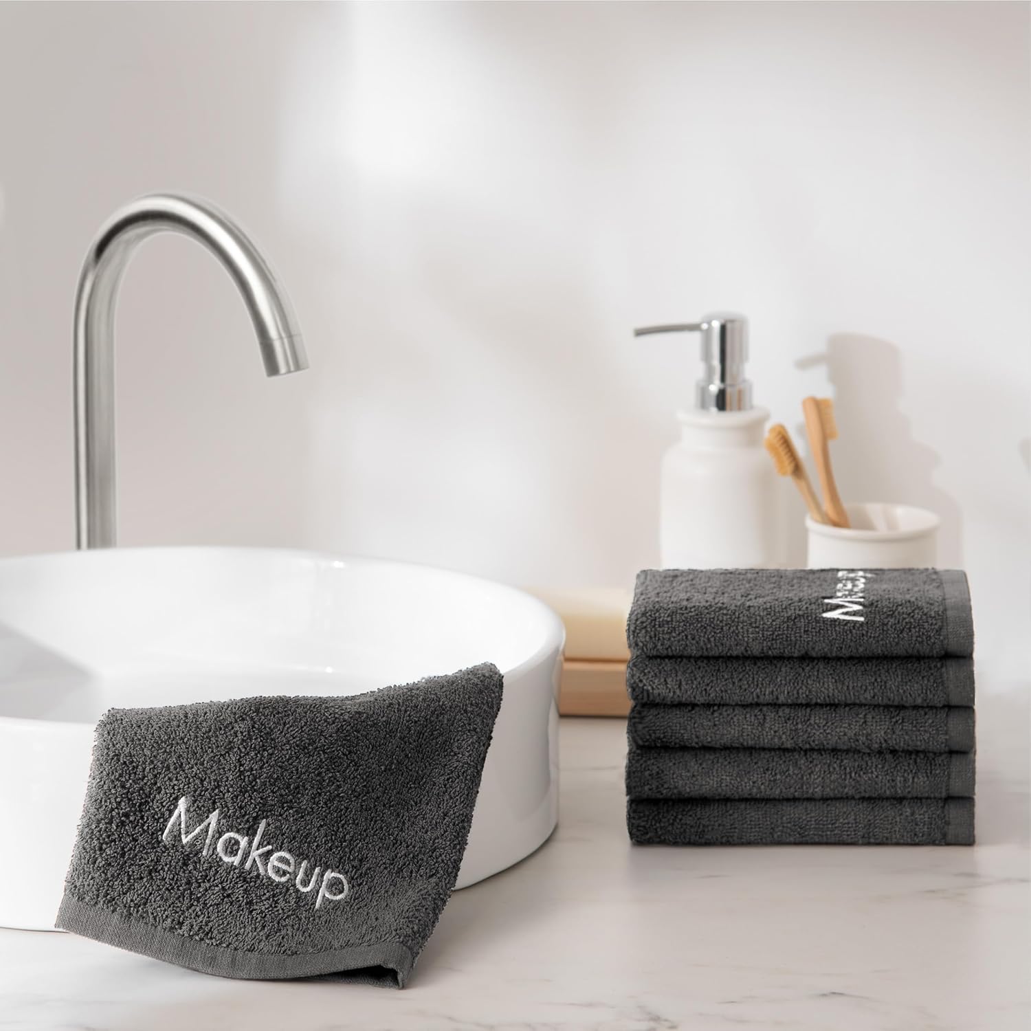 - PRETTY MAKEUP REMOVAL CLOTHS: Elevate your facial cleansing experience with Arkwright Home Cotton Grey Makeup Remover Washcloths beautifully decorated with embroidered Makeup. Designed for super-gentle skincare, these 13x13 inch cloths offer a gentle makeup removal experience.