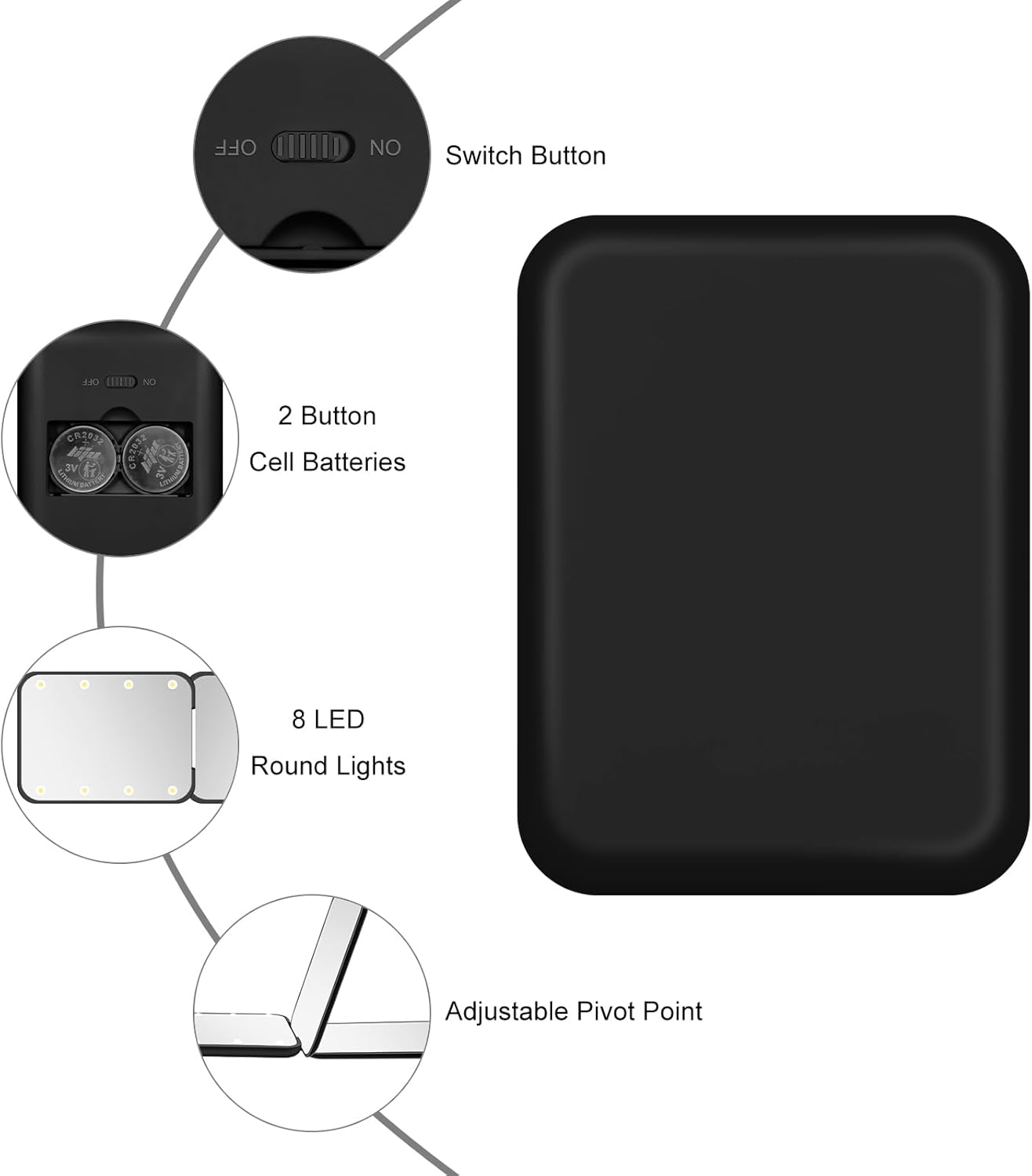 • [Stay Beautiful All the Time] - Our compact mirror is lightweight and compact, easy to carry, with a small built-in battery, which can help you save the time of charging, so that you can watch your facial makeup meticulously all the time. It's the perfect companion for you on the go. Whether you're in between makeup sessions or out and about, it can create a flawless look for you, so you can feel confident and beautiful on any occasion.