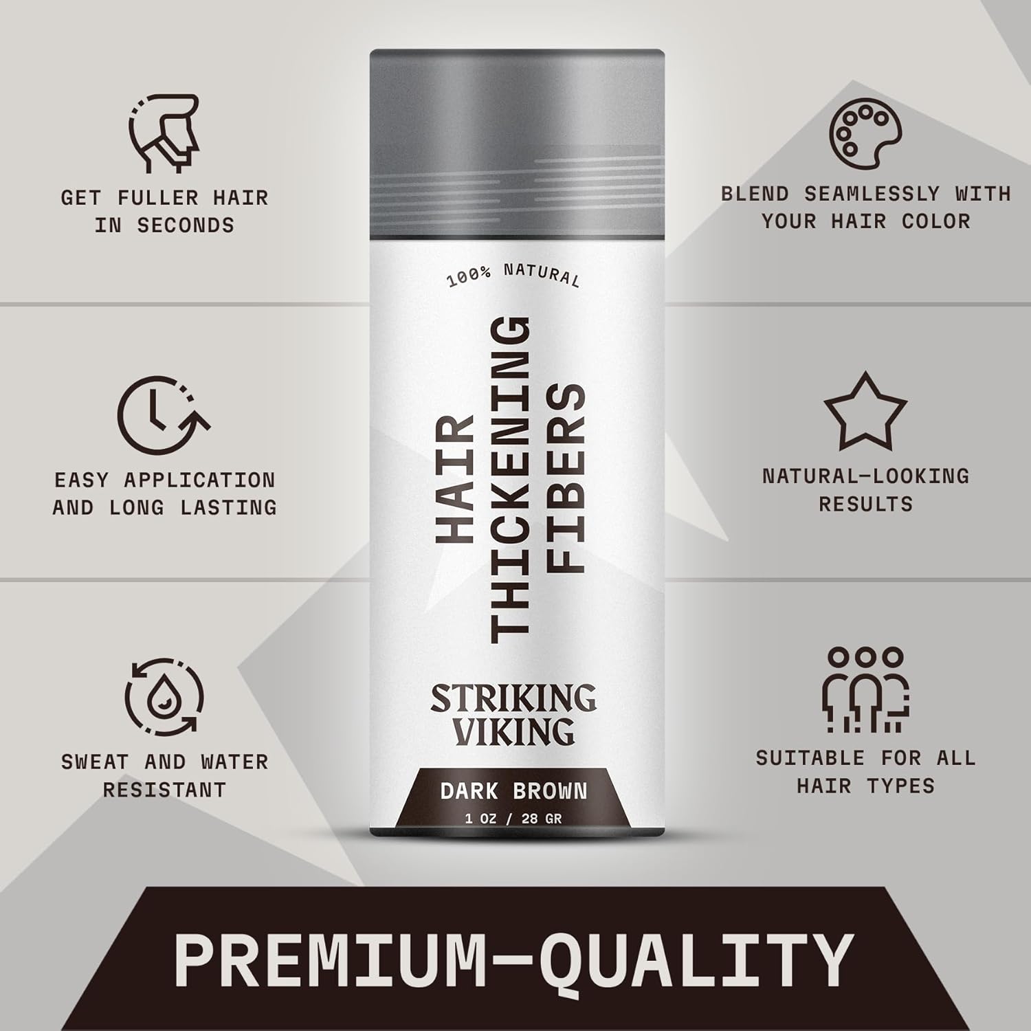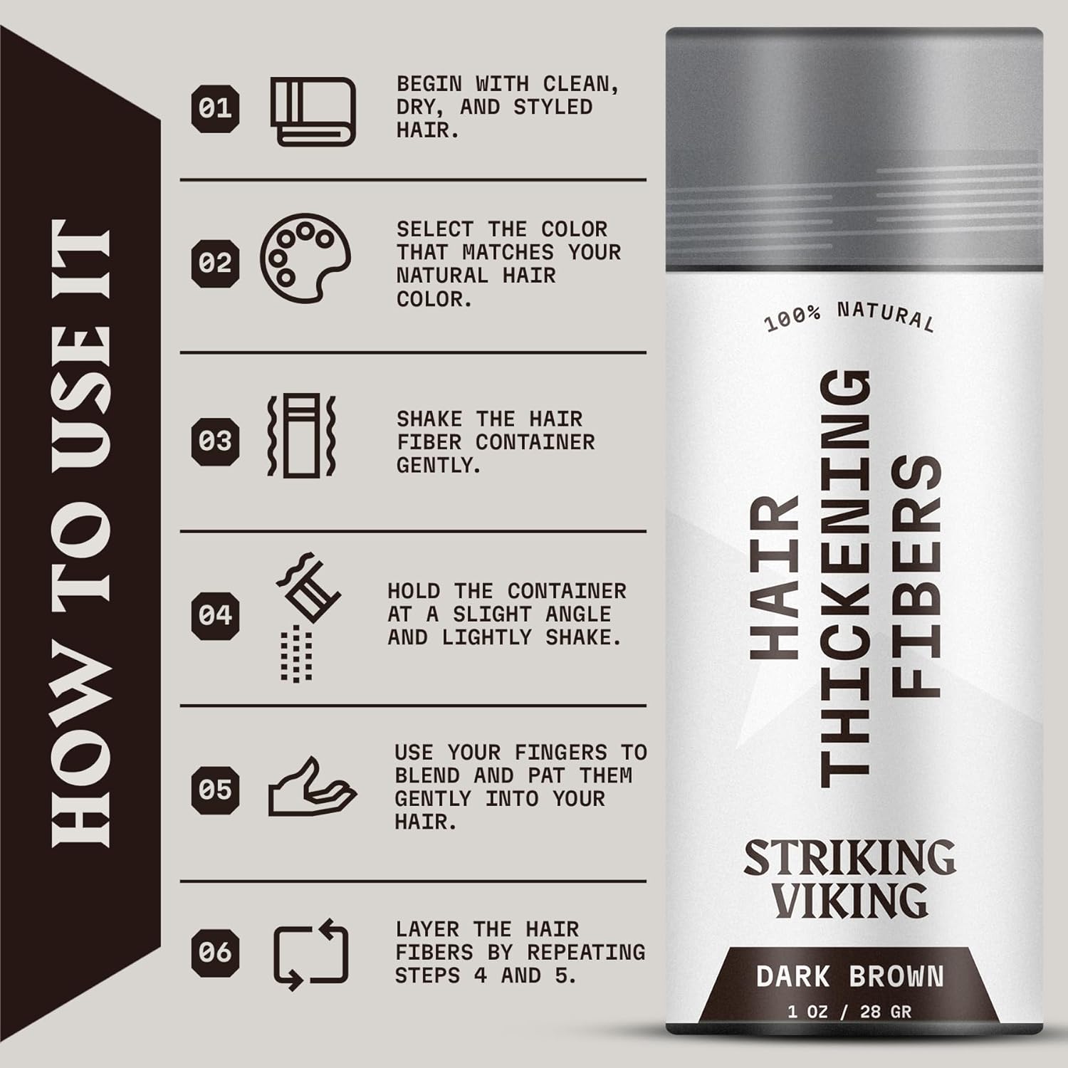 Striking Viking Hair Fibers - Dark Brown, 0.98 oz, Pack of 1 - Long-Lasting Hold & Hair Filler - Undetectable Coverage with Fiber Powder - Easy Application & Styling Powder
