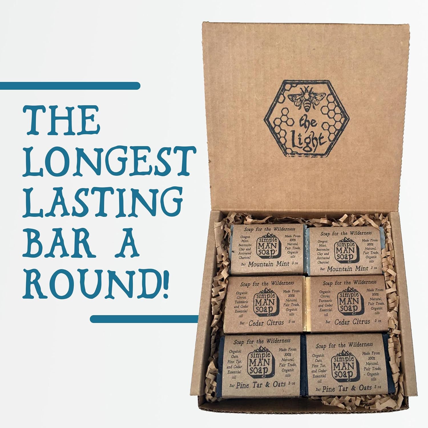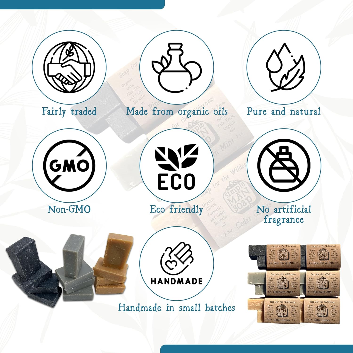 SimpleMan Soap Bar (Pine Tar/Cedar Citrus/Mint) - Men’s soap with Organic & Fair Trade Essential Oils - All Natural Man Bath Soap Bars-Pack of 12-2.5 Ounce bars(30 Ounces Total)