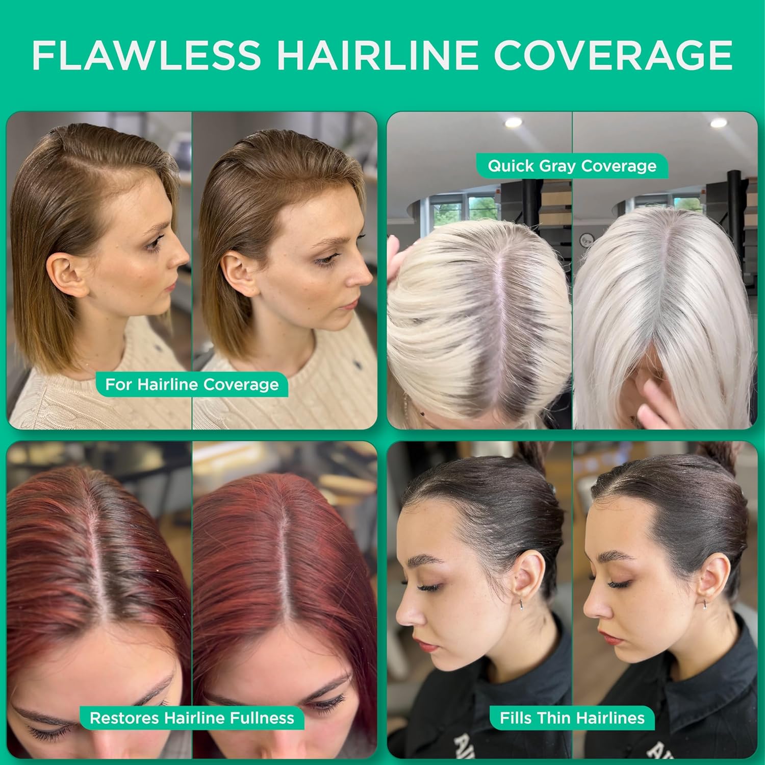 - WATER AND SWEAT RESISTANT: Our root cover up hair mascara is designed to withstand any weather conditions including wind and rain. Just use our hair line shadow powder and feel confident whether you're facing a rainy day or an active workout โ your flawless look stays intact. Note, a tiny bit of hair spray is recommended, once applied donot touch even if it rains, it will stay firm and last until hair is washed with a shampoo