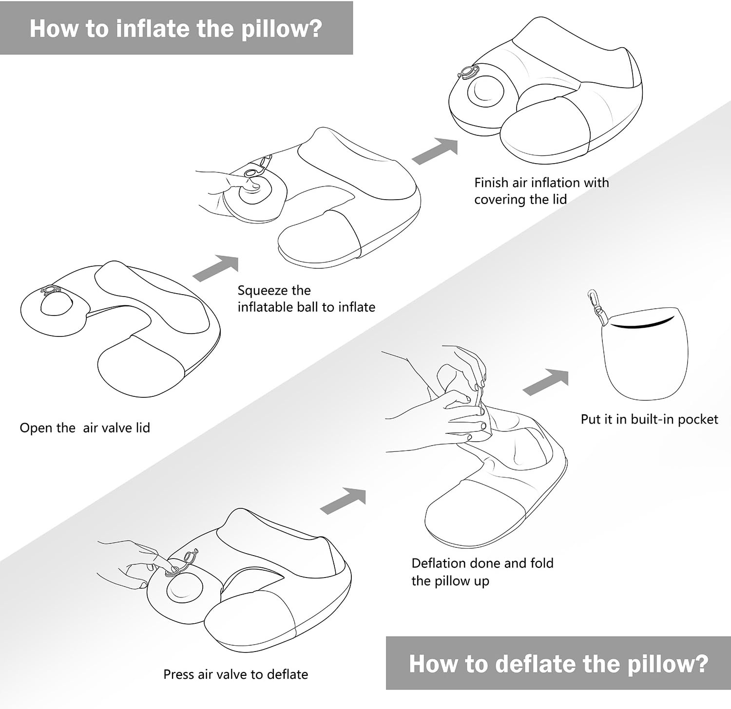 - COMPACT DESIGN: The self inflating travel pillow storage bag is designed on the pillowcase, its removable and machine washable,you no longer need an separate carry case .Furthermore,built-in pocket holds your phone,it's a great portable